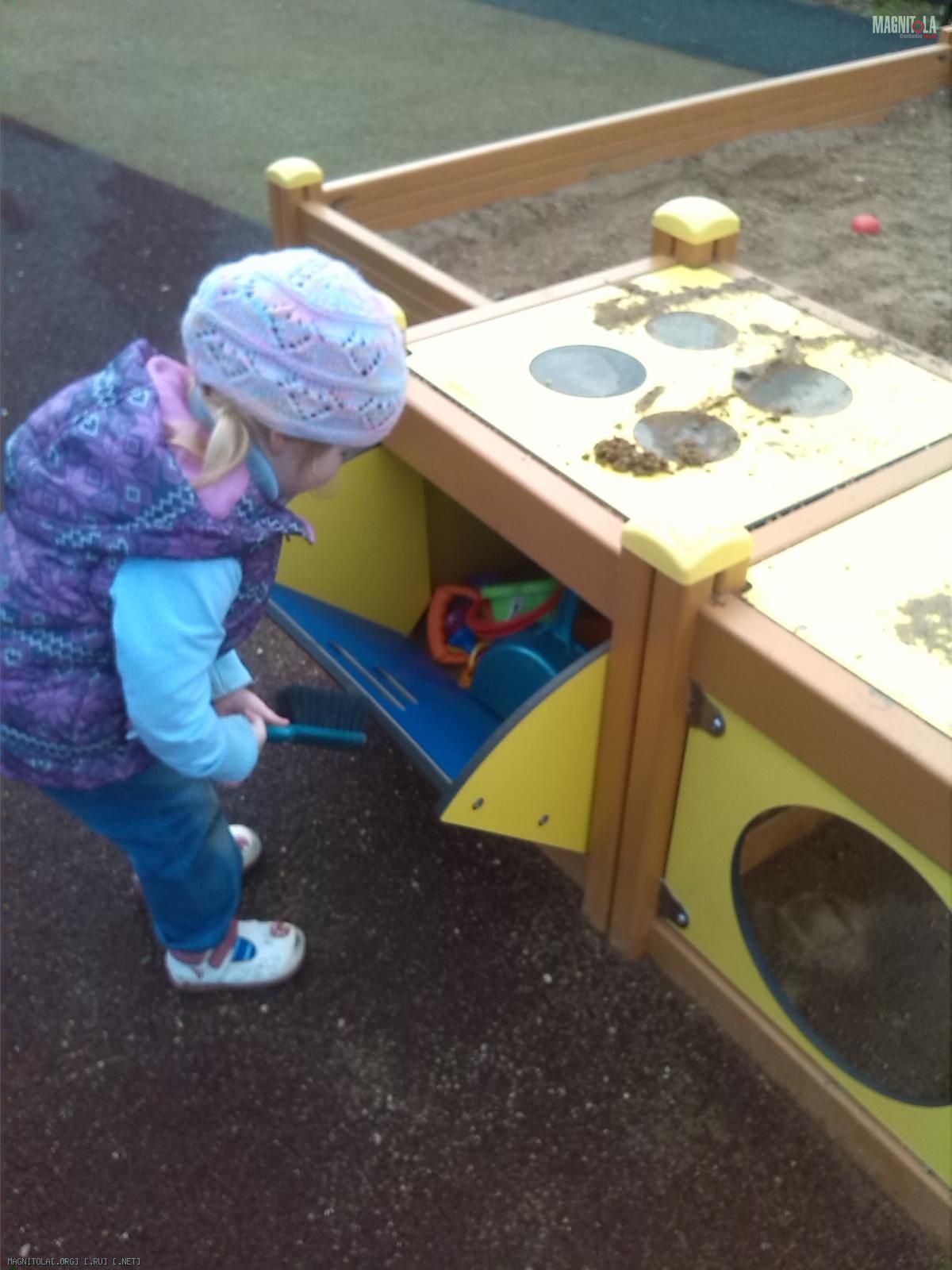 Так во дворе огороженные мини-футбольное поле, баскетбольная площадка, спорт-городок. Все на резиновом покрытии.