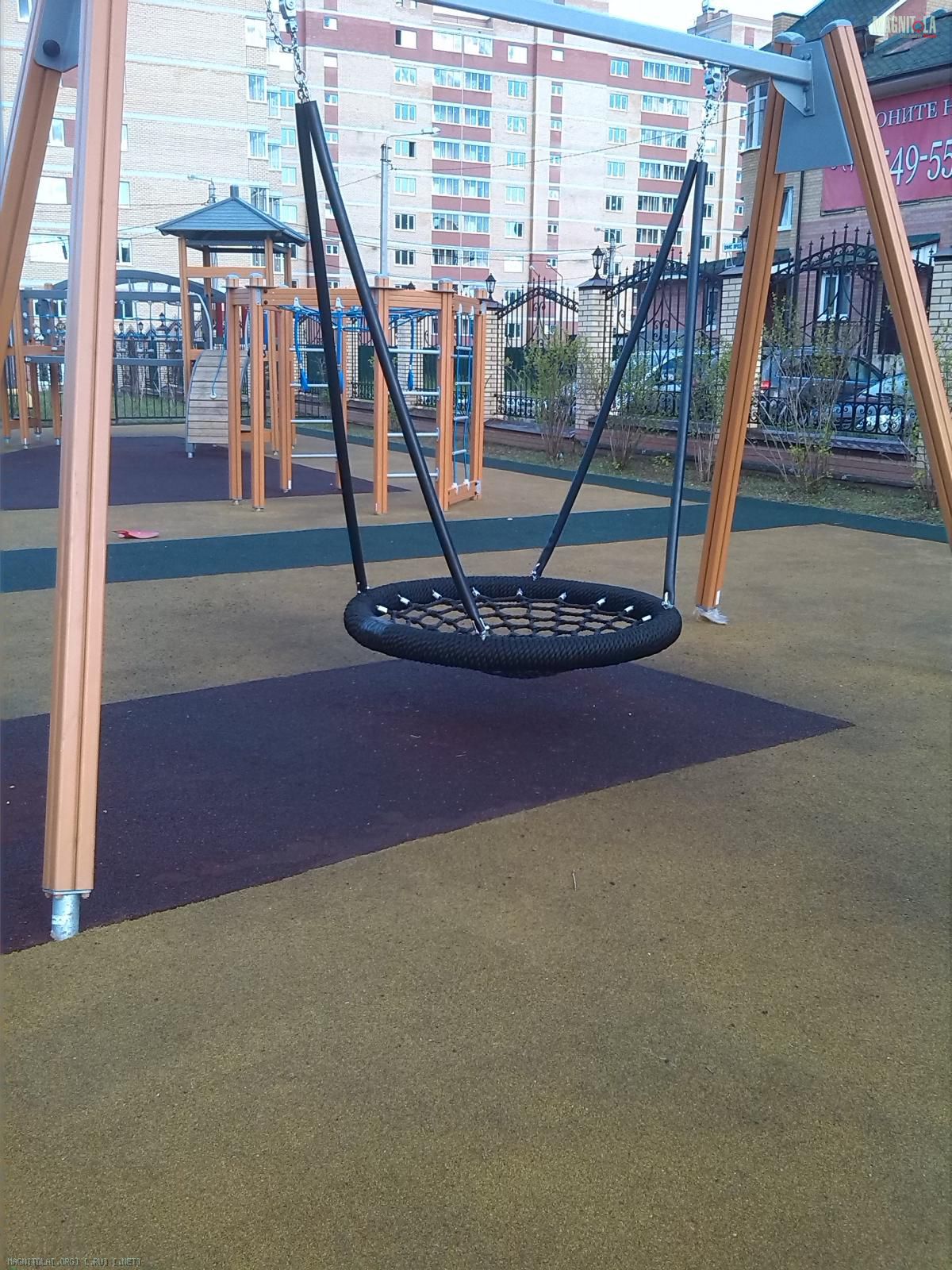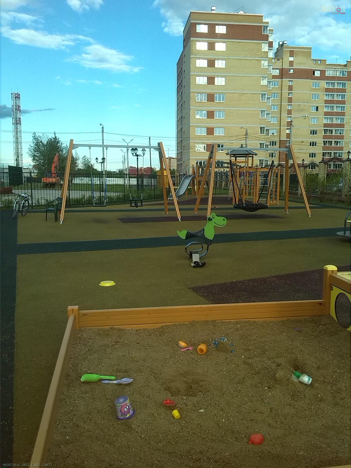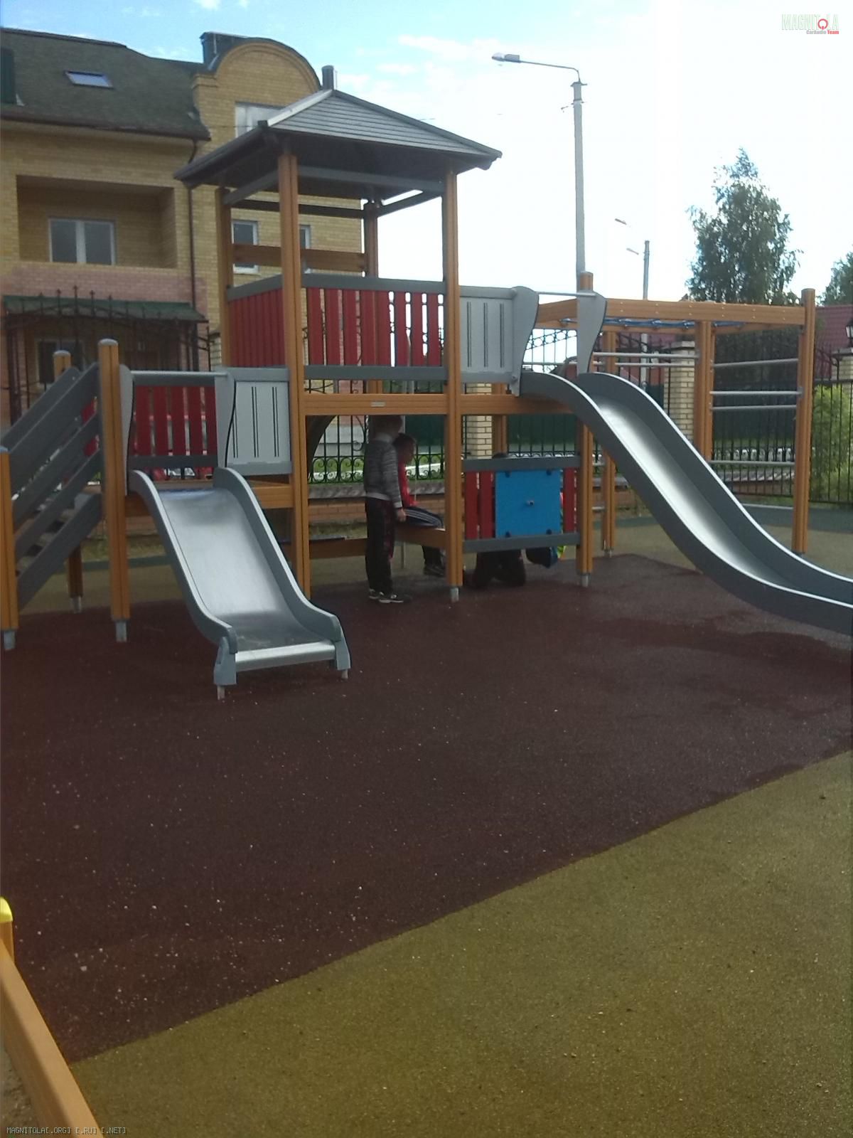 В комплексе всего 3 дома - наш 8-10 этажный, 5-этажка и таунхаус. Площадка во дворе ваще огонь!!!