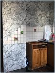 на самом деле, идея пришла после поклейки обоев-там повыше где то фотка перевернутая есть,,,,немножко неудобно, конечно...все залеплял малярным скотчем, потом размечал, аккуратно выпарывал кусок обоев, потом плитку лепил....все как обычно-сначала асфальт, потом трубы...)))