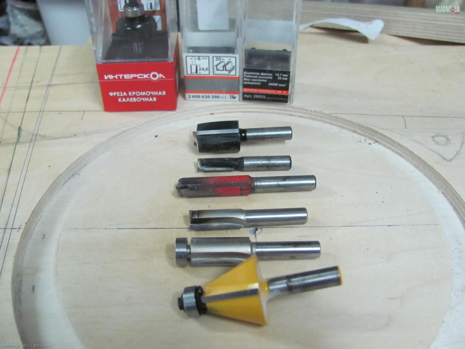 Всё это бюджет и все это работает хорошо пока новое. Однако дело не в этом, а в том что насмотревшись зарубежных видосов я пришел к выводу что пилить циркулем окружности при помощи прямых фрез это неправильный путь. Поэтому буду скоро работать при помощи круглых шаблонов. Фрезы так должны жить на порядок дольше.