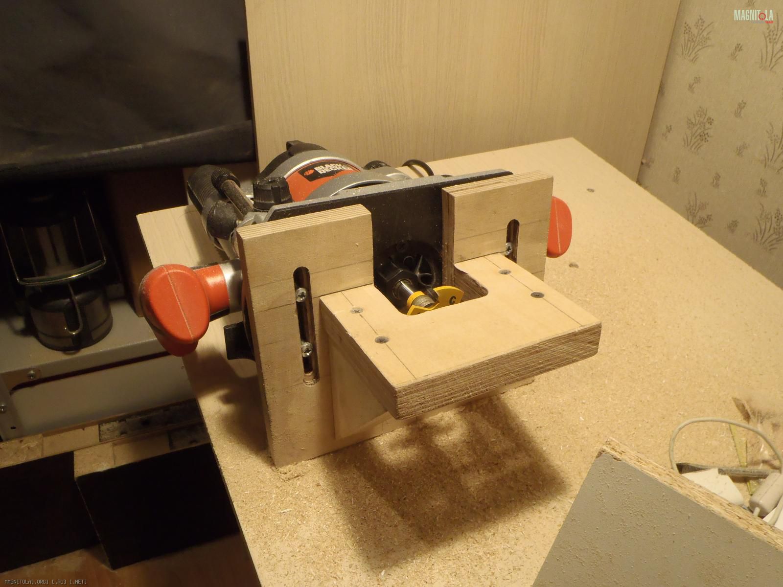 Для того, чтобы не городить отдельные направляющие, сделал просто пазы. Но для этого пришлось изготовить сначала приспособу для фрезерования пазов.