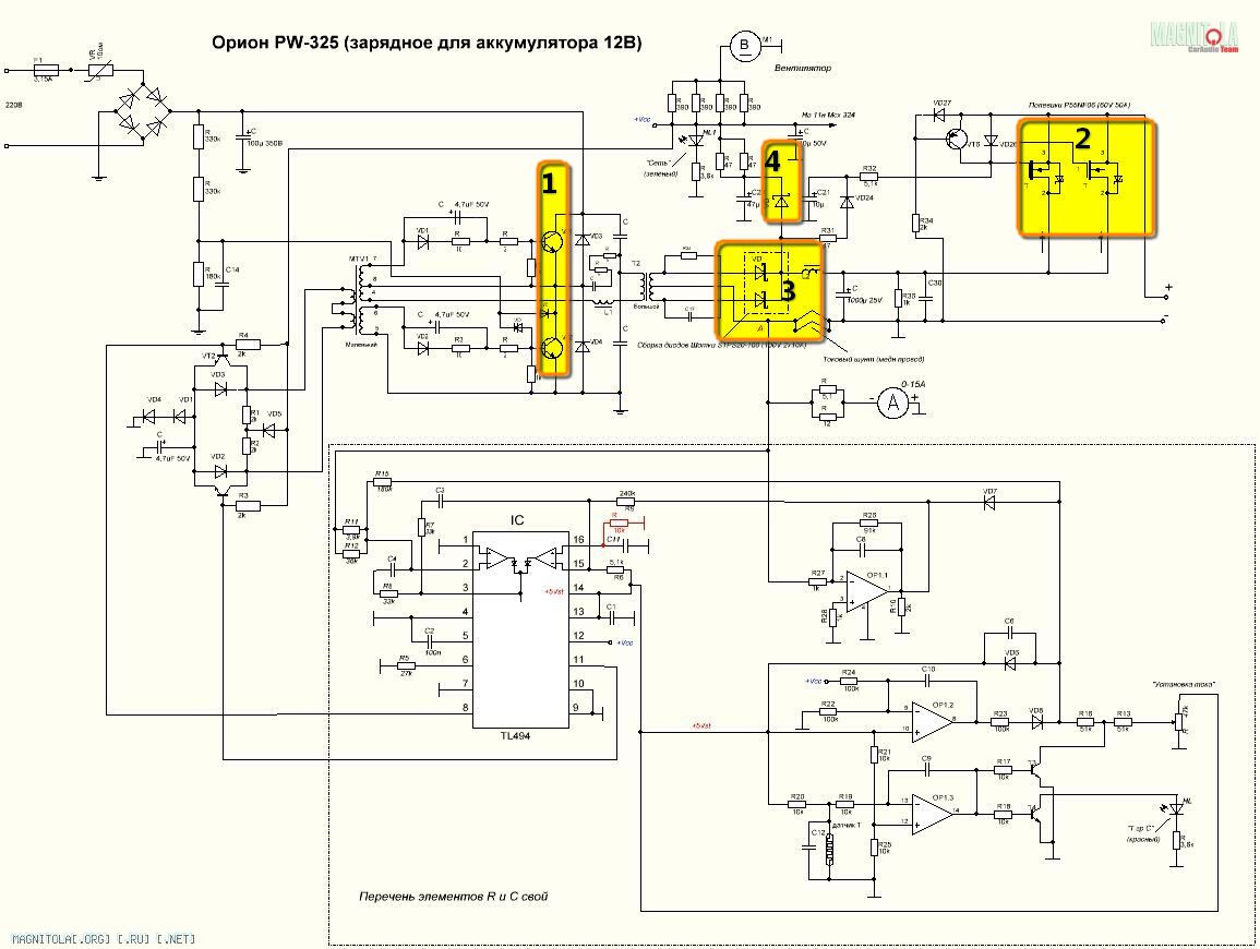 Так же в ЗУ по схеме есть защита от переполюсовки на мосфетах "2". Тоже могли навернуться, если нарушена схема питания затвора. Первичные признаки этого - недобор по току при заряде, перегрев БП.