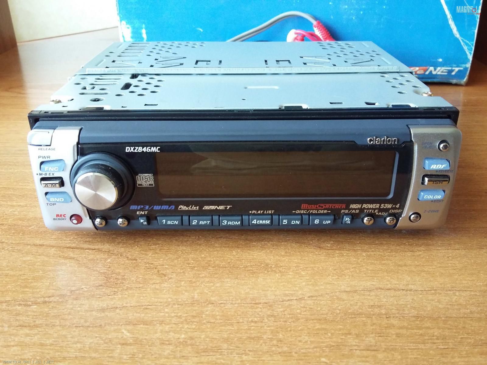 Продам ГУ с отменным тёплым звучанием из своей коллекции Clarion DXZ846MC. Комплект самый полный, состояние новой. Характеристики ГУ тут (разница только в отсутствии RDS), больше про магнитолу можно почитать здесь.
