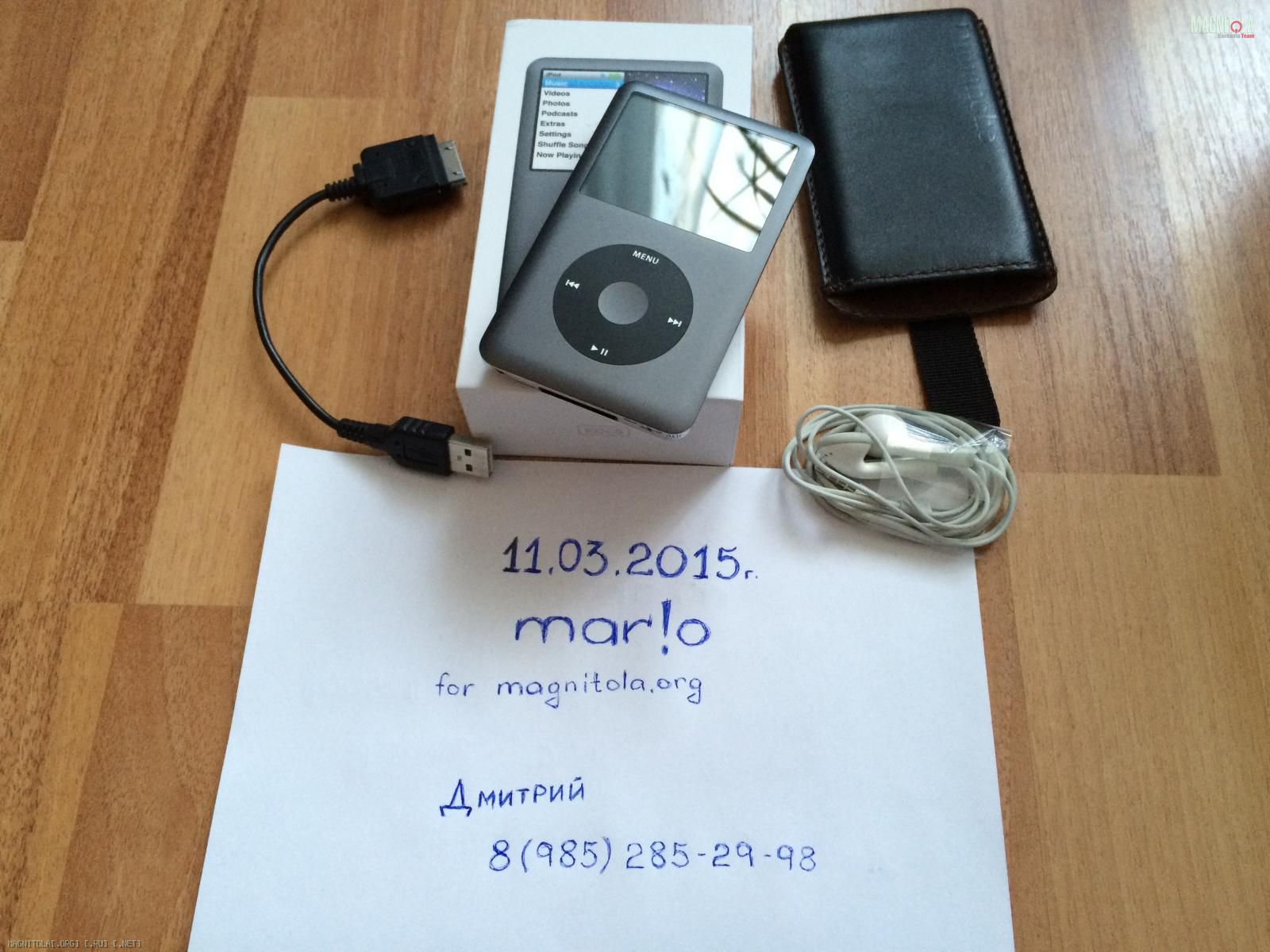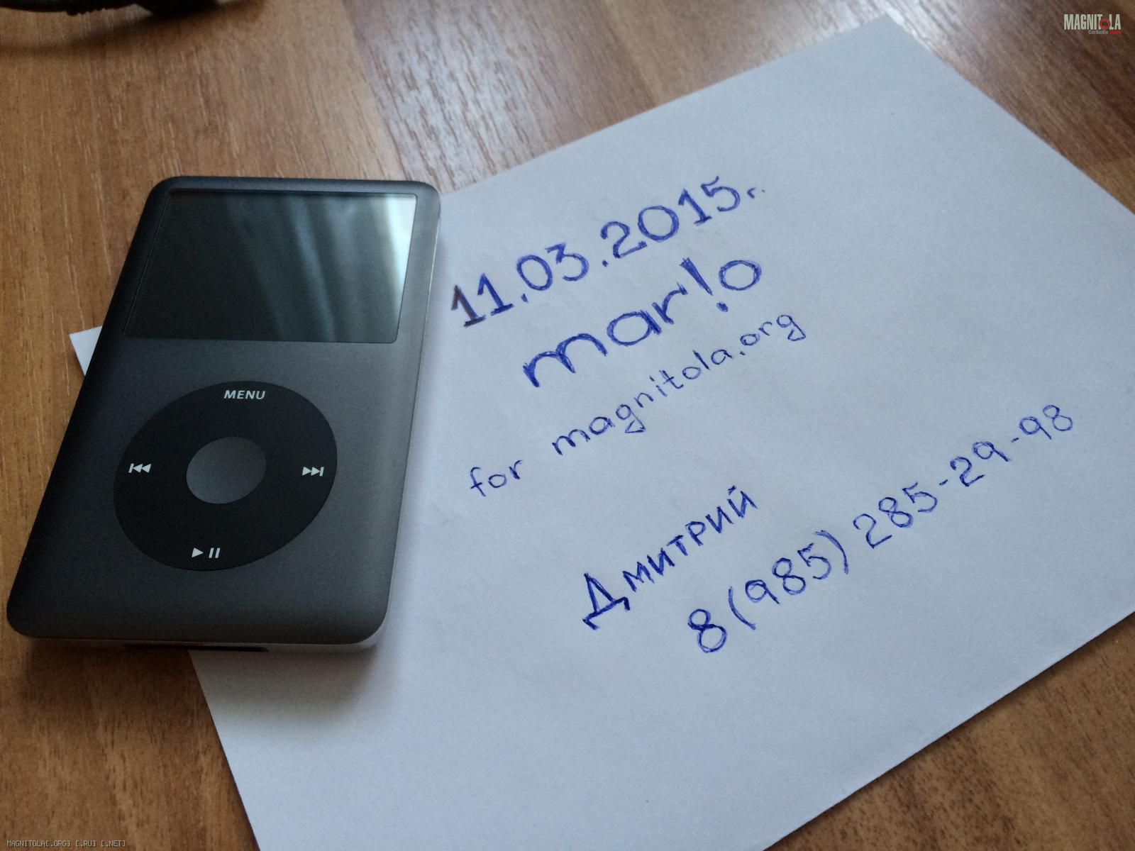 iPod в пользовании год, с момента покупки находился в чехле. Задняя часть не затерта и не исцарапана. Комплект почти полный, вместо оригинального USB-шнурка прилагаю провод Alpine KCU-445i.