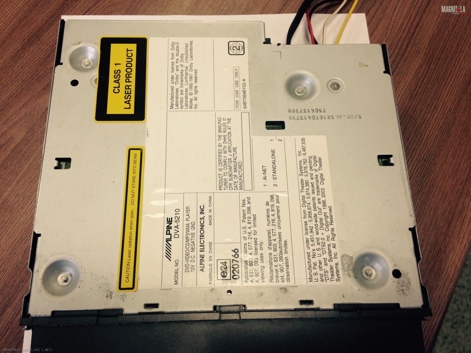 Alpine DVA-5210. Проигрыватель оснащен вх/выход шины Ai-Net. Управляется с любой магнитолы Alpine (у которой имеется шина Ai-Net), отображает всю информацию о воспроизведении на дисплее магнитолы. Может служить "проходным устройством" AiNet - т.е. к примеру Ваш Alpine CDA/IVA + DVA5210 + любой чейнджер CHA