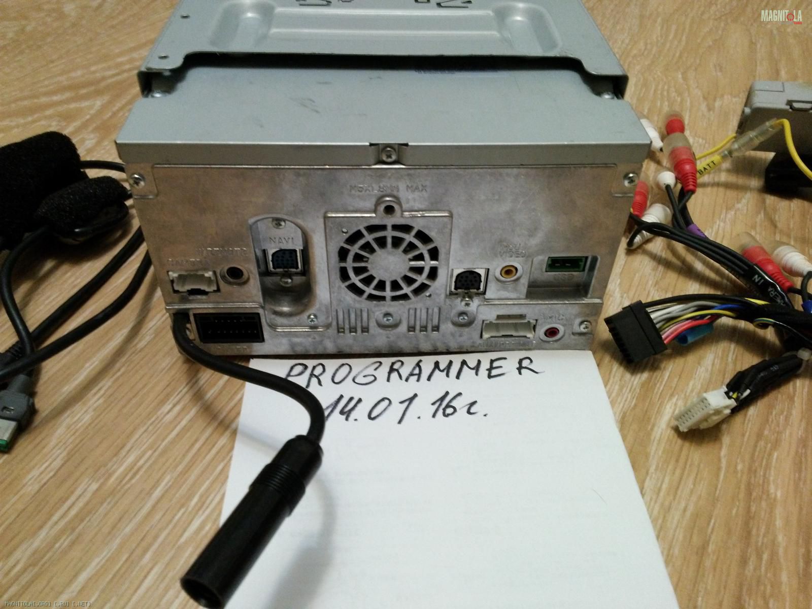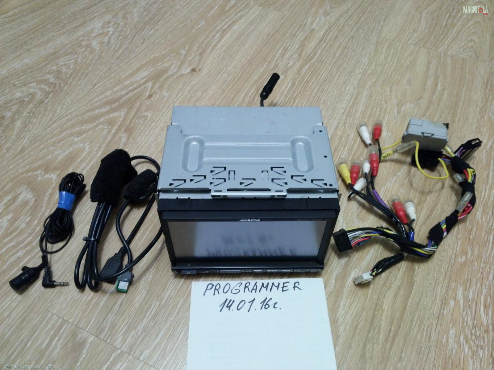 В комплекте провода подключения, шахта(не родная), usb кабель, микрофон, RCA кабель.