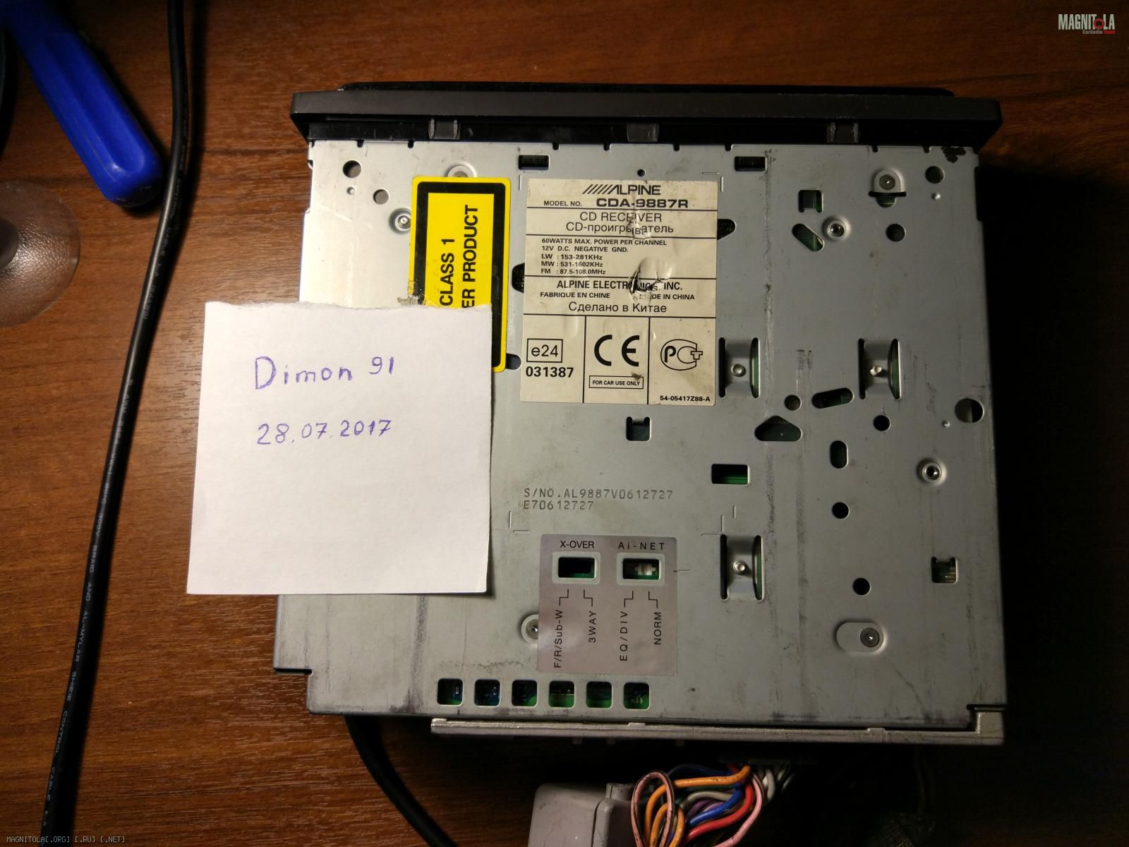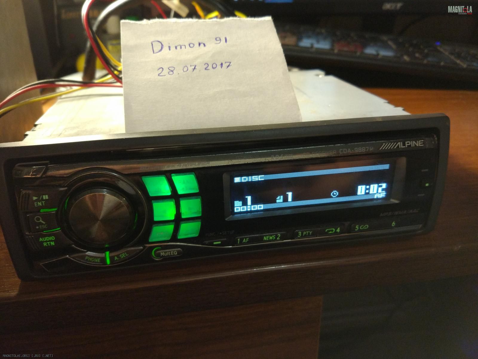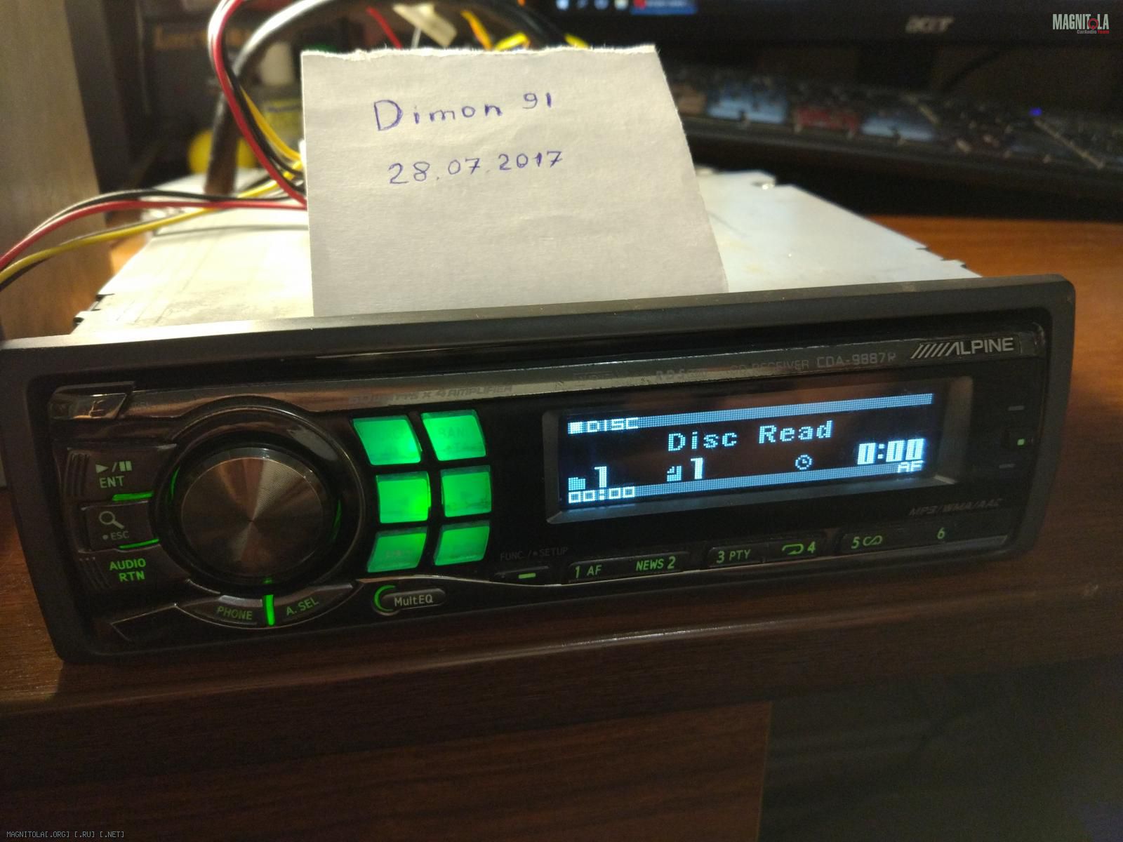 Продам Alpine CDA-9887R. ГУ рабочее, имеются следы эксплуатации. Диск принимает и отдаёт само или с помощью 50/50 (нужно чистить ролики), читает без проблем любые болванки. В комплекте: магнитола, разъем с проводами, рамка, пульт ДУ, инструкция на английском. С вопросами в ЛС.