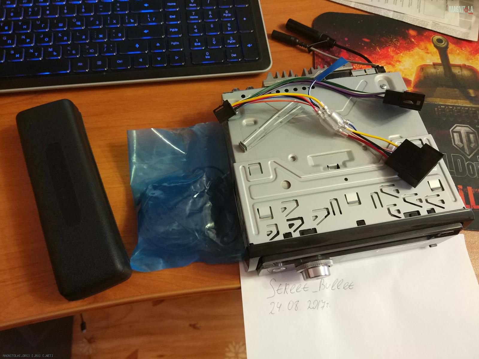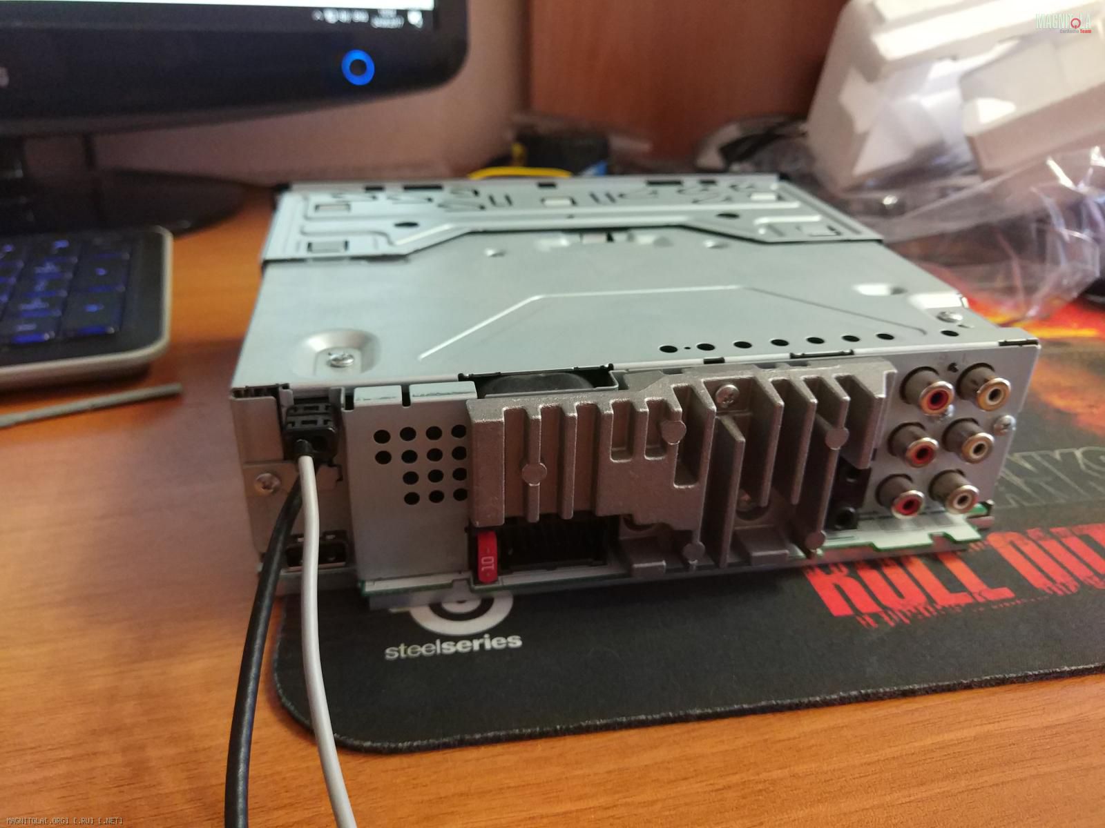 Вчера только снял, простояла в авто около года, преды целые, царапин нет, пока только одно фото, до дома доберусь на фоткою во всех ракурсах xD Мик в комплекте, провода не тронутые. в подарок отдам пульт SR-110. Коробка, документы все есть. Жесткий IDE на USB 2.0 определяется в секунду, все выводы (USB, AUX) на тыловой панели 3 RCA.