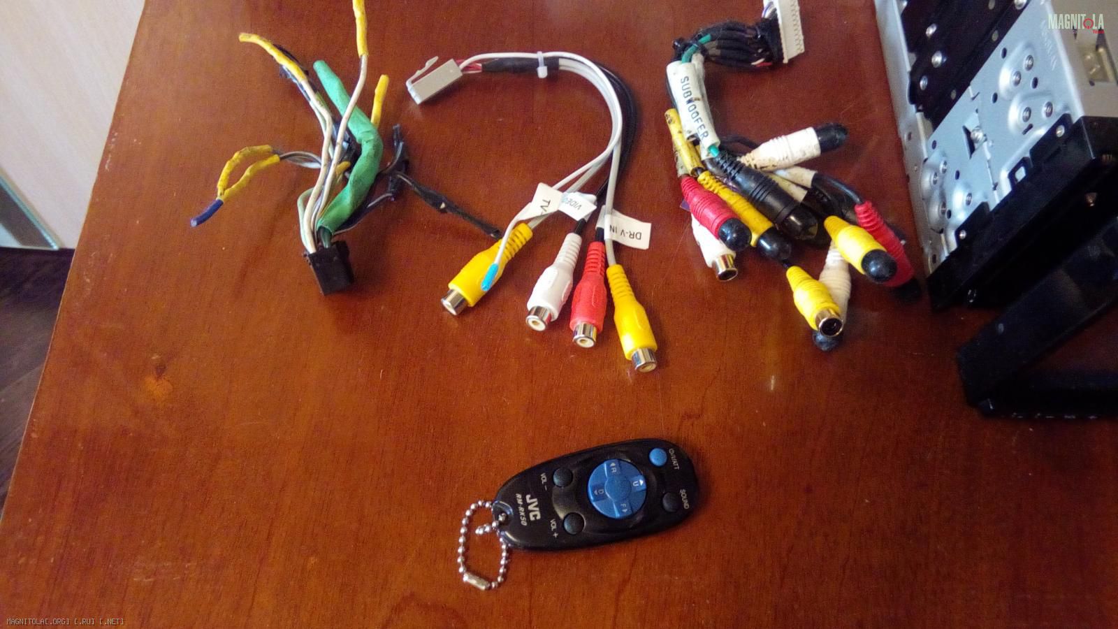 Комплектность магнитолы все, что на фото. Рамка, какие-то уши крепления (хз для чего они, если честно), все хвосты разъемов, мелкий пульт. Также есть большой штатный пульт в отличном состоянии и мягкий транспортировочный чехол для панели.