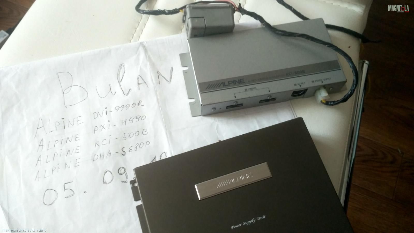 Комплект alpine dvi-9990r, pxi-h990,dha-s680p, KCI-500B. Провода для подключения все есть. Из минусов: нет рамки на магнитоле, разрезаны провода от магнитолы до блока питания(соединить проблем нет по цветам), у чейнджера все подключение выведено в бок(на фото видно) Внешний вид аппаратуры отличный. Любые фото видео, связь вайбер 895 три 238 40 3 четыре. ТОРГ есть!