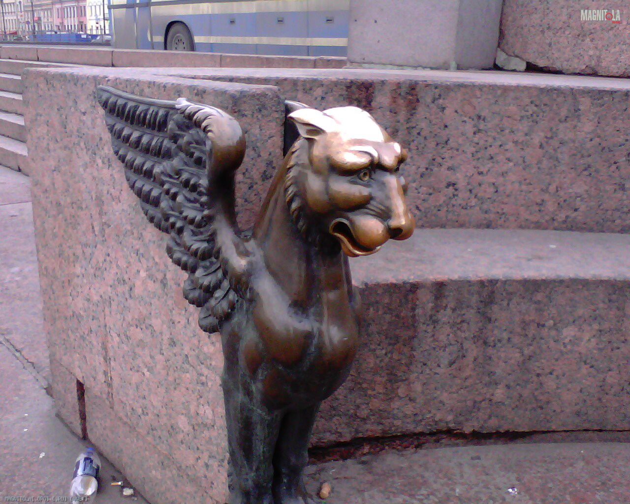Это Грифоны на набережной у Акдемии Художеств, возле Сфинксов. Выполняют желания на удачу, если их потереть! Трут хорошо! Сами видите как блестят!!!Вложение 168593