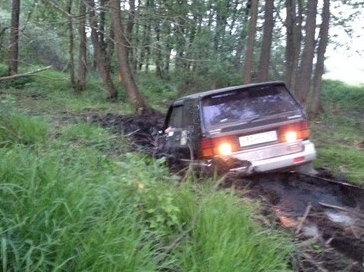Сел только потому что кто то до меня на чём то сравнительно низком плотняком сидел .Вырыли огромные ямы под колёсами в колее и напхали веток.В них передок и рюхнулся с разгона,стащив всю машину в колею и усадив на задний мост.