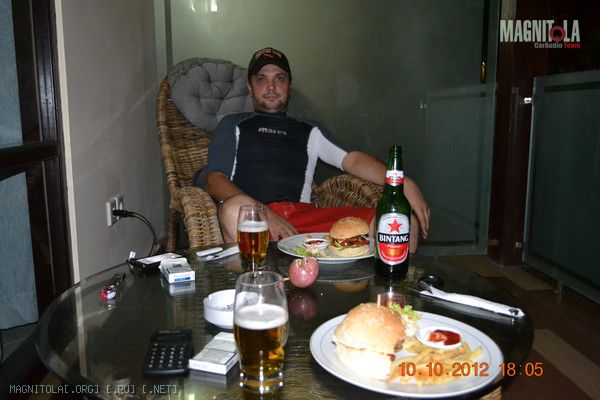 От пуза нарубаться в отеле обходилось примерно в 30 долларов на двоих. Пиво BINTANG мы покупали за территорией отеля по 22.000 рупий объемом 0,7. Так как в отеле 0,5 стоило 19. тыс.