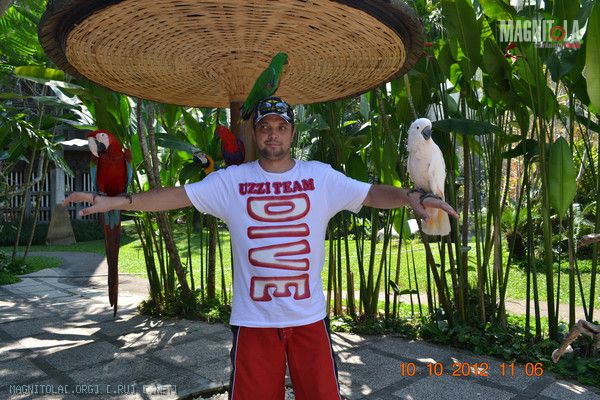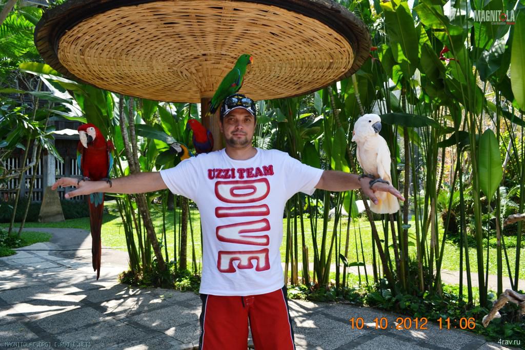 Потрясающее место. В первый раз увидел белого павлина в живую.) Можно без проблем сфотографироваться с попугаями и туканами, бесплатно и на свой фотик, но параллельно Вас фотает смотритель-балиец на свою камеру и при выходе предложит купить фото,…но не навящево..)