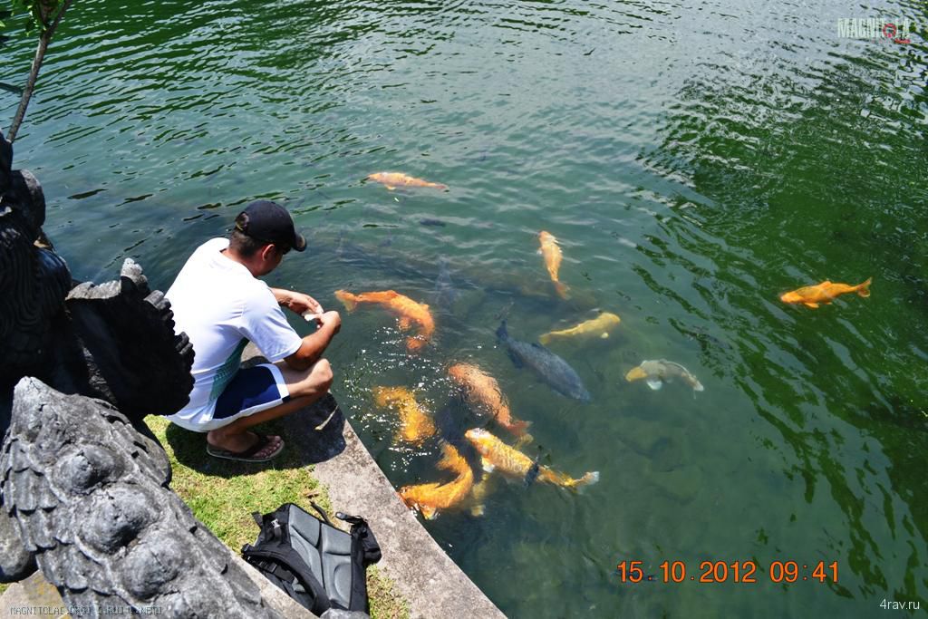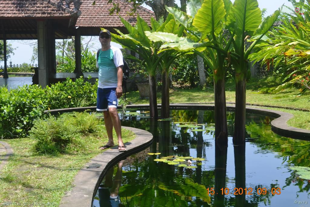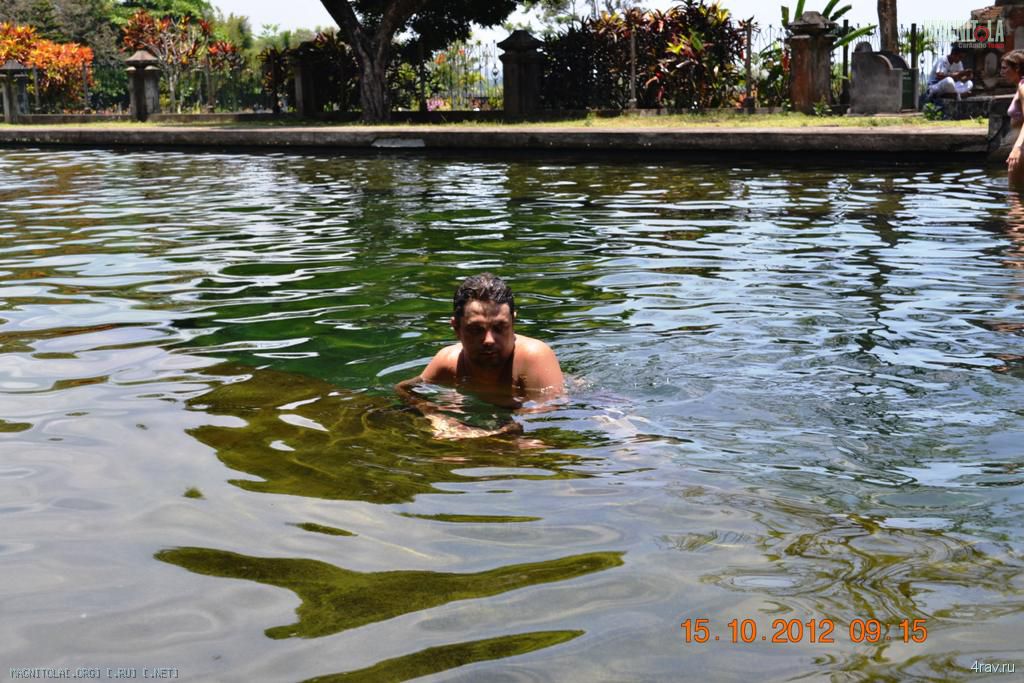 Вот и о нем расскажу не много. Перед входом лучше купите хлеба, для кормления рыбин, которые плавают почти во всех бассейнах дворца. Кормление это не что, бросил кусочек и вода бурлит как в фильме пираньи.) Очень умиротворяет, когда кормишь больших..Слушаешь шум фонтана, вдыхаешь ароматы тропиков, и кидаешь хлеб, кидаешь.. Только вот жара и высокая влажность просто убивают..) Но есть выход..) На территории дворца есть большой бассейн с прохладной и освежающей водой. В наличии так же и раздевалки (возьмите плавки-купальники). Купание платное, в маленькой будке сидит балиец, собирает деньги, около 7 долларов..Но это того стоит..