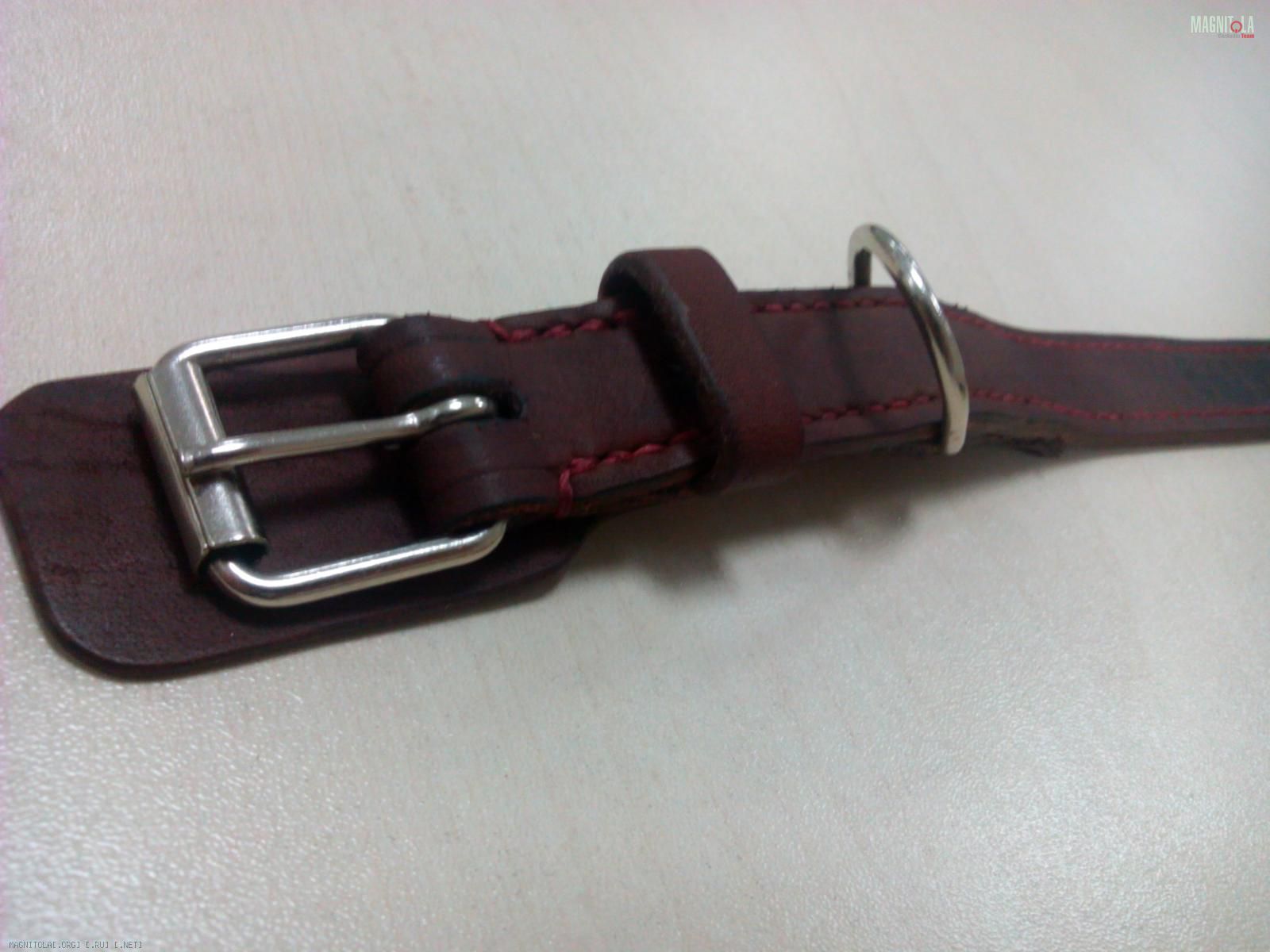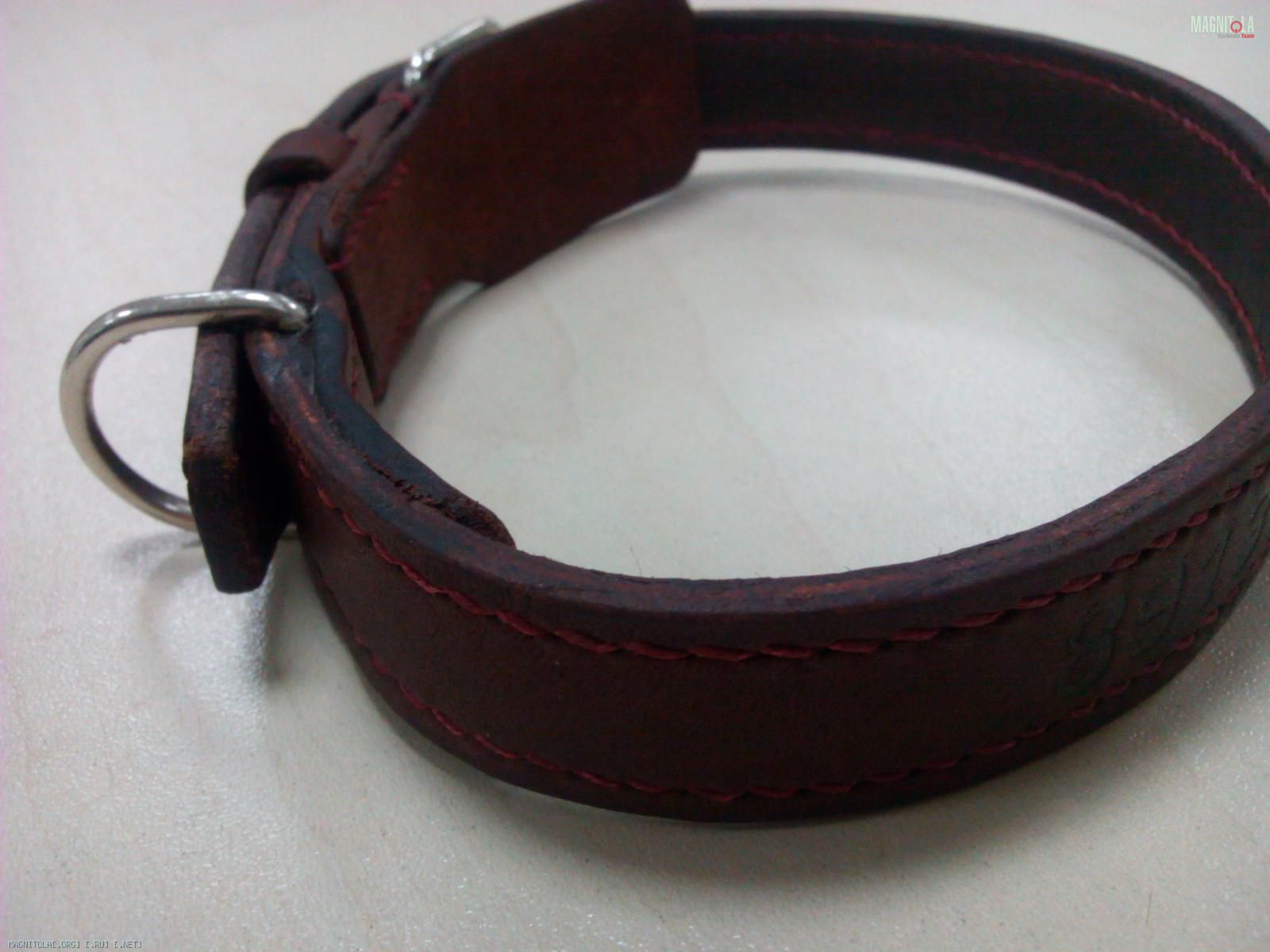 Ошейник, просто ошейник, прошитый вручную. Украшен номером телефона владельца :)