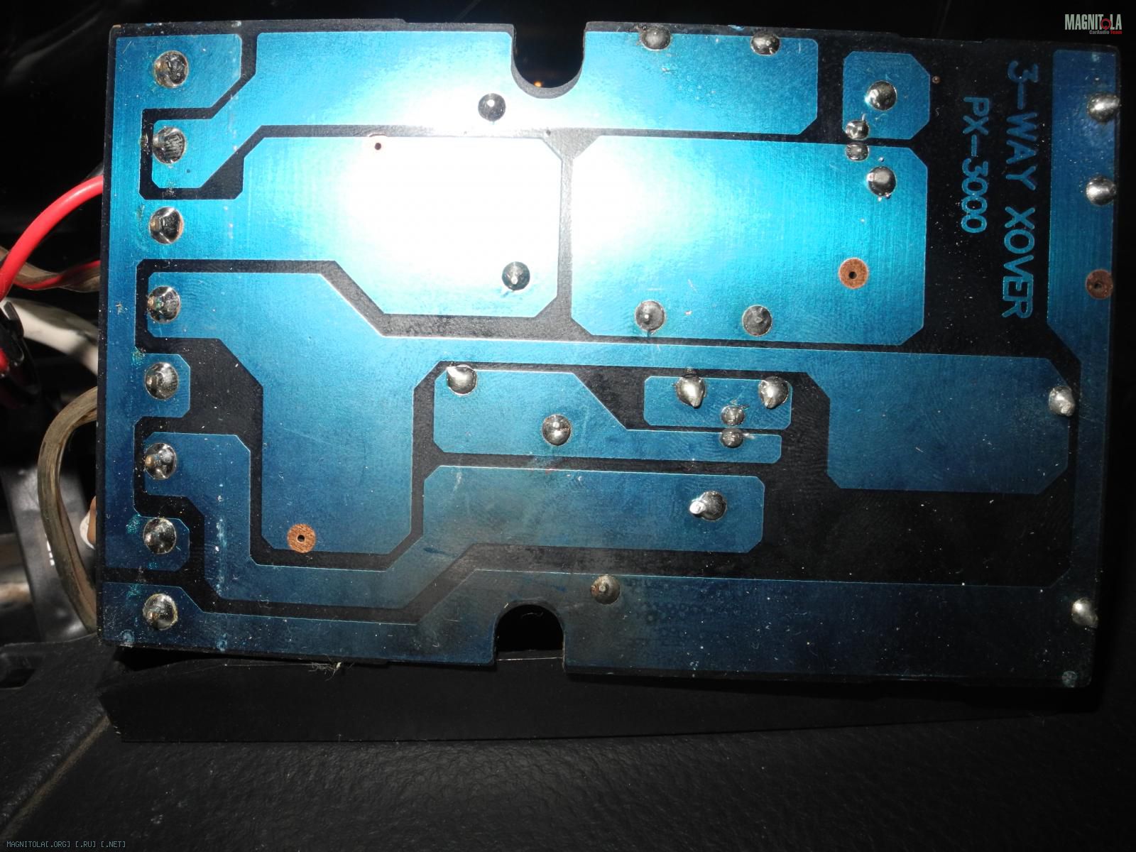 У меня уже готова схема ваших кроссов и обозначены места разрывов и спаек. ) Теперь ваша очередь. ) Берете кросс и бумажку с ручкой. Рисуете схему по такому принципу. Входит в схему сигнал через клемму IN+, далее на дорожках платы от него идут 3 ответвления, соответственно, на каждый динамик. Нужно понять и записать, через какие элементы проходит сигнал, прежде, чем достичь клемм W+, MID+, TW+. Все минусовые клеммы соединены. Дерзайте.