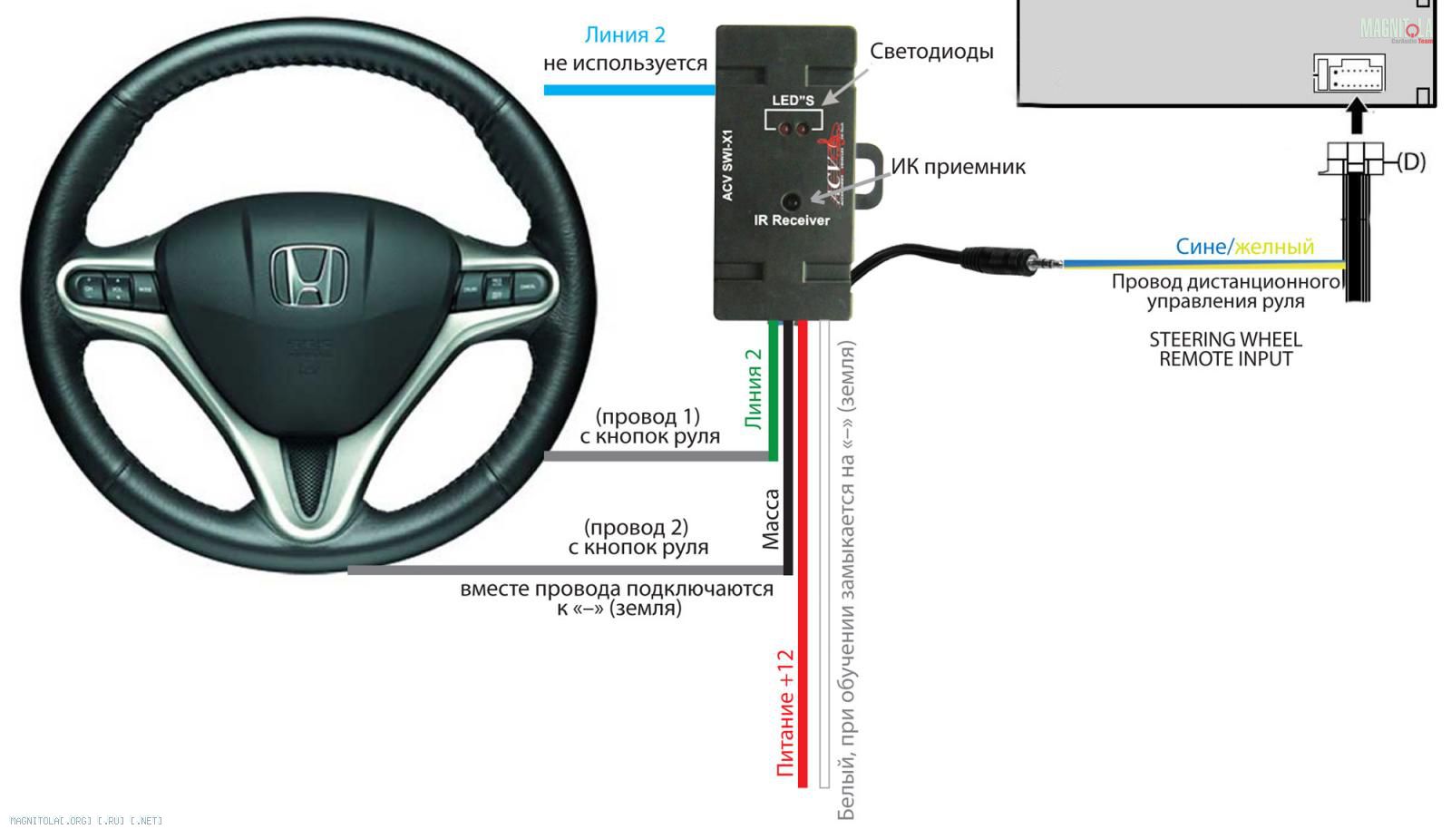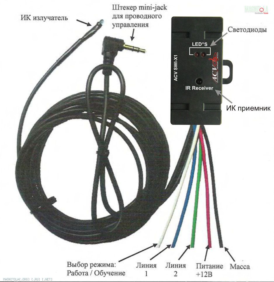 У магнитолы всего 1 провод для подключения кнопок. Она не поддерживает ИК пульт