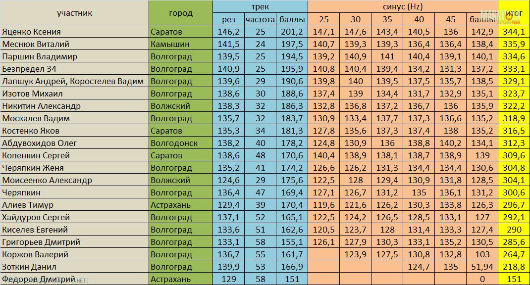 Всем привет! Вчера приехал из Москвы, сперва отсыпался, потом отмечали первомай, было не до форумов. Сегодня добрался до компа, и в первою очередь хочу поздравить, и поблагодарить всех кто принял участие и помогал в организации ВОЛГОГРДСКОГО этапа соревнований. Мужики, всем респект, и надеюсь это станет доброй традицией в нашем городе. А то порой кажется что автозвук у нас просто загибается, становится грустно! Ребята ВЫ молодцы! Еще раз всем огромное спасибо!