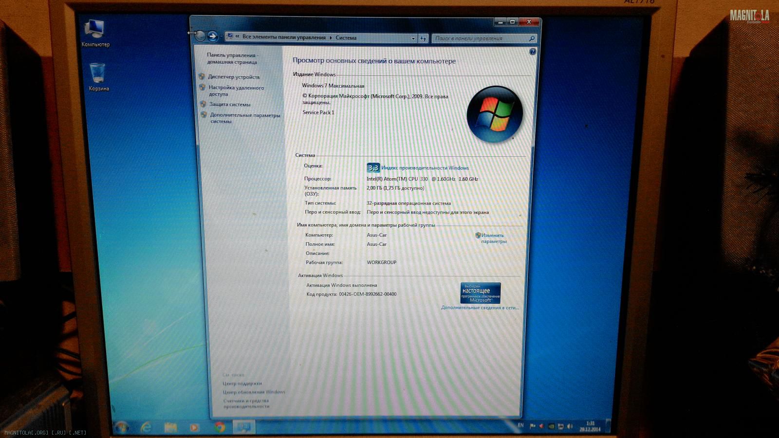 Платформа Asus AT3IONT-I, оперативки 2гб DDR3-1333, жёсткий диск SSD Corsair 90гб, в корпусе micro-ITX со строенным блоком питания от постоянного +12В. Свежая :) ОС установлена W7 со всем пакетом критических обновлений на 28.12.2014.