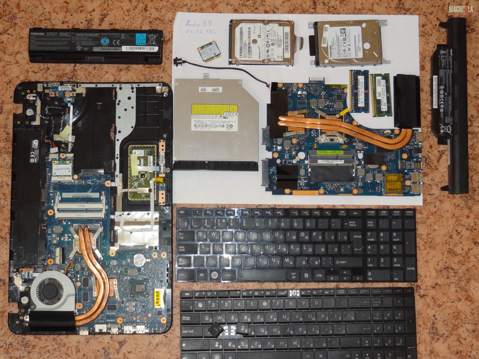 1. - Toshiba Satellite c850-b3k. Потерпел крушение и остался без экрана, пролежал больше года в таком состоянии.