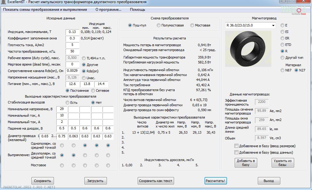 Если не делить на 2, то 360Вт и витков поменьше