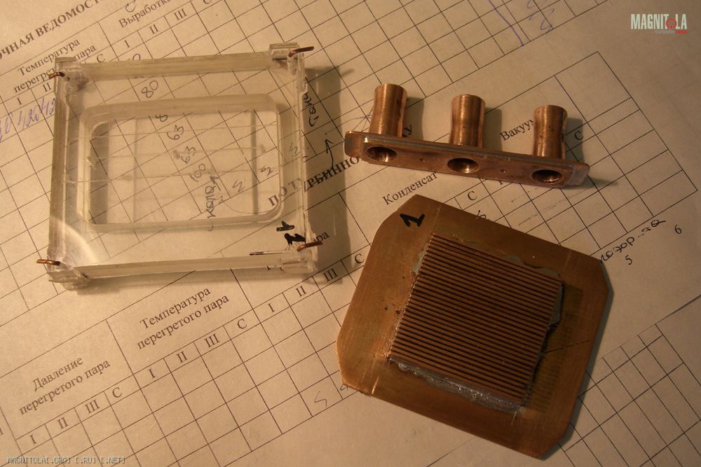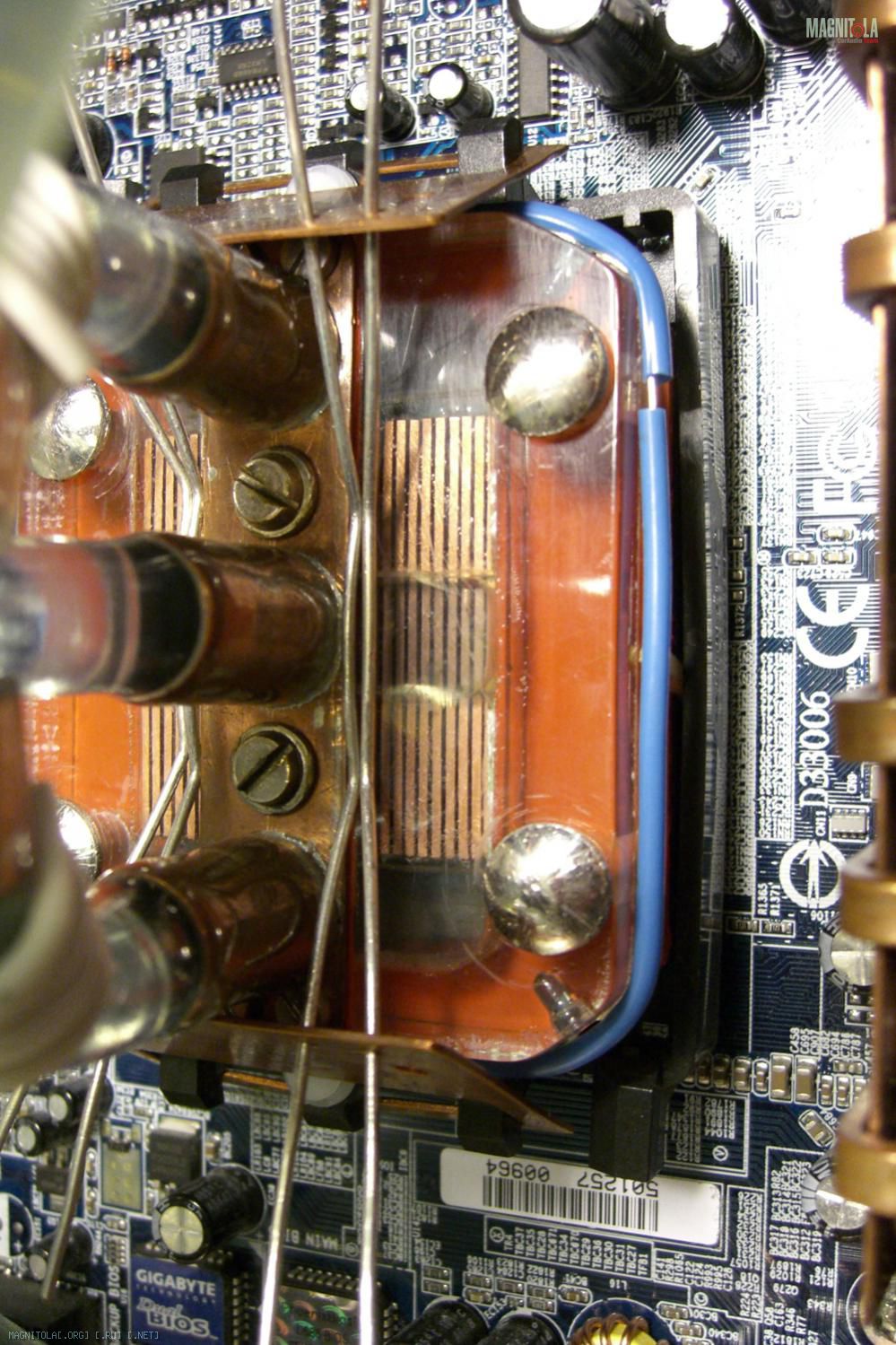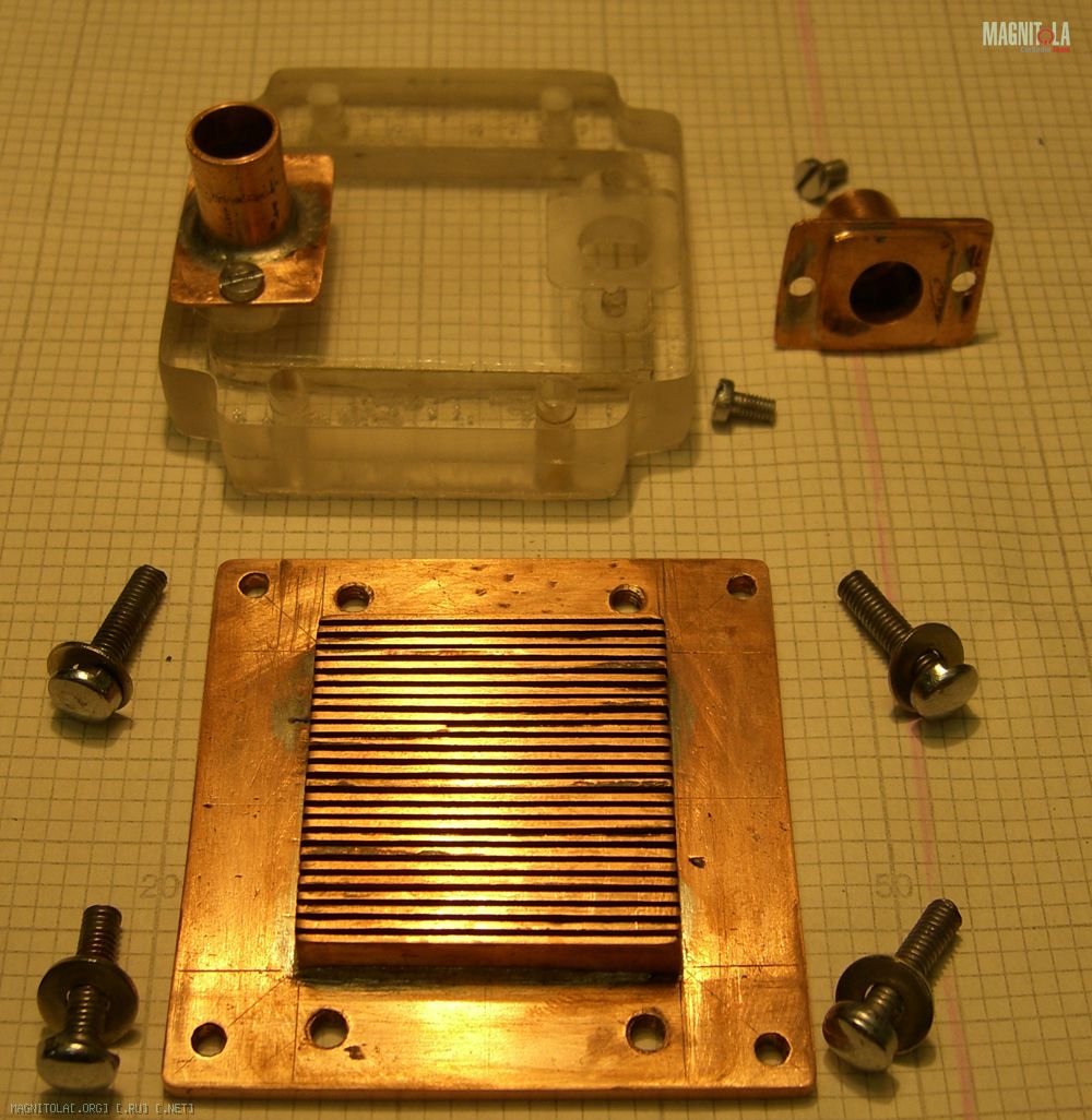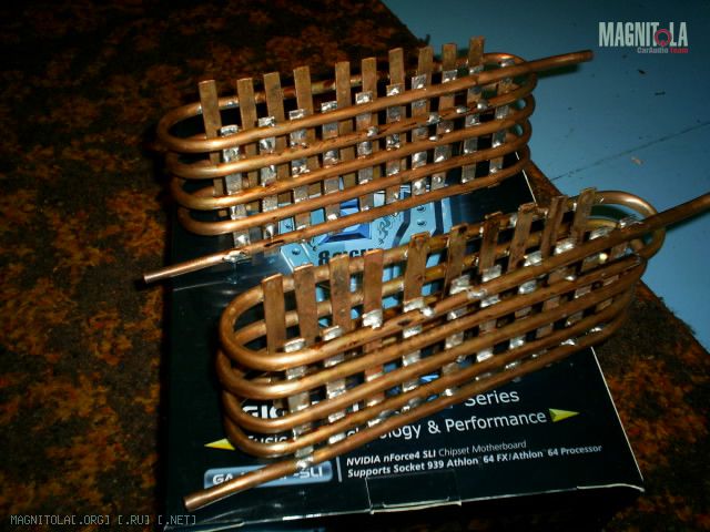 прикольно:). а у мну радиатор от волговской печки охлаждает, тоже весь медный и паяный))). ну, с обдувом есессно..