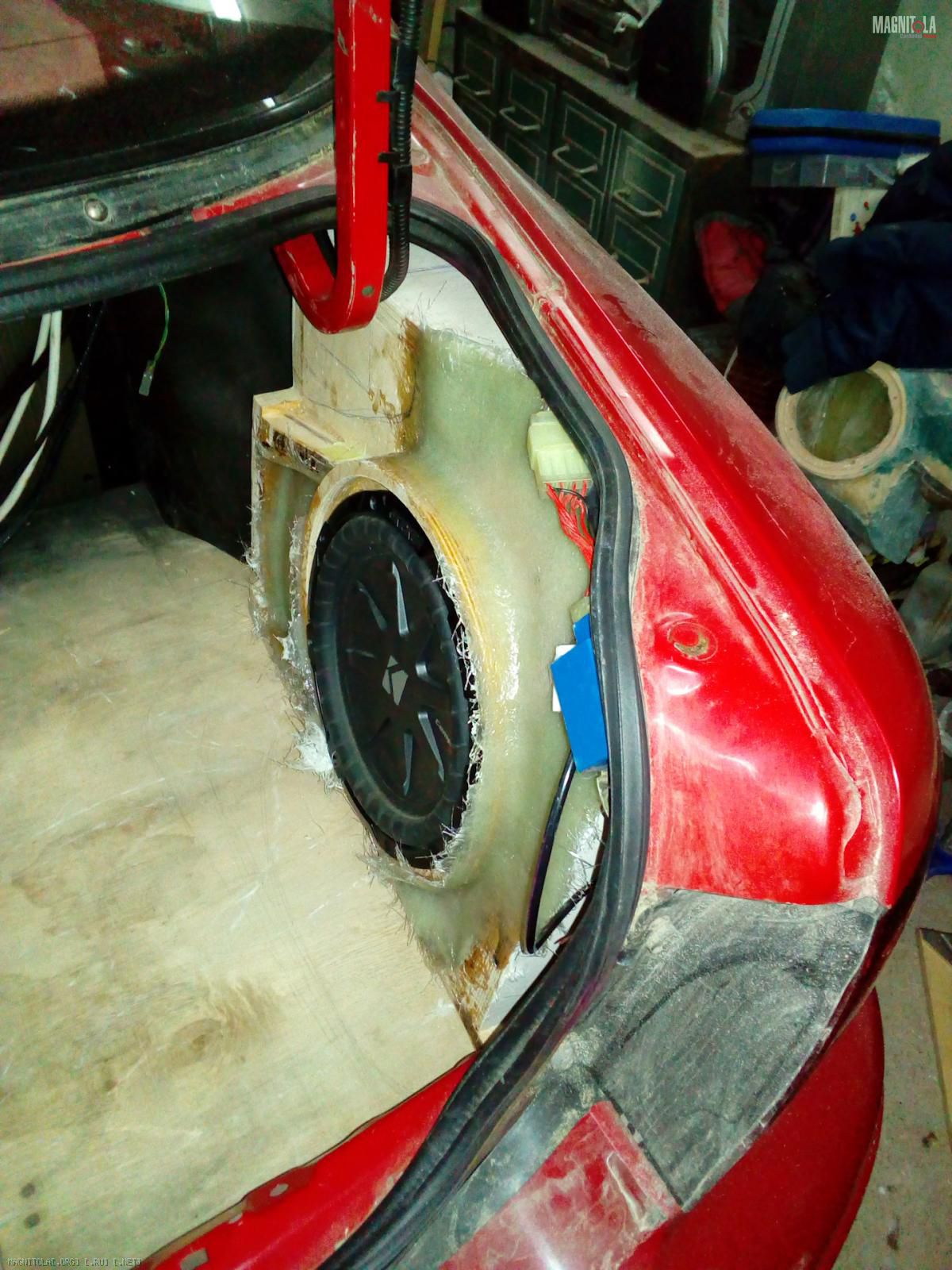 Основная причина его туда закинуть, это полностью сохранить багажник, потому что придется переделывать пол и коврик, а так же доступ к фонарям усложнится.