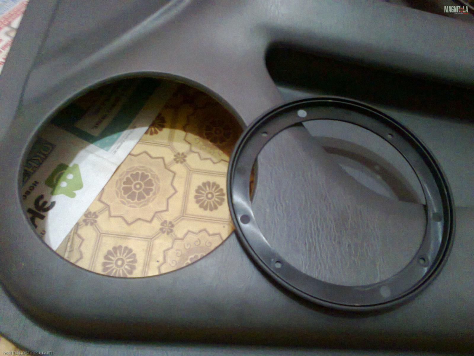 Не могу придумать чем вклеить основание для защитной решетки в дверную панель. Основание для решетки от мидбасов Хелик Р206. Из чего сделаны неизвестно. На дверной панеле есть обозначение PP/PE, т.е. полипропилен и полиэтилен. Обшивка состоит из 2-х явно разных материалов. Основная часть черный пластик и вставки розовато-белые с обратной стороны панели. Что из этого PP, а что из этого PE - ХБЗ. Динамик к держателю сетки крепиться не будет! Никакой силовой нагрузки этот элемент не несет. Фото прилагаются