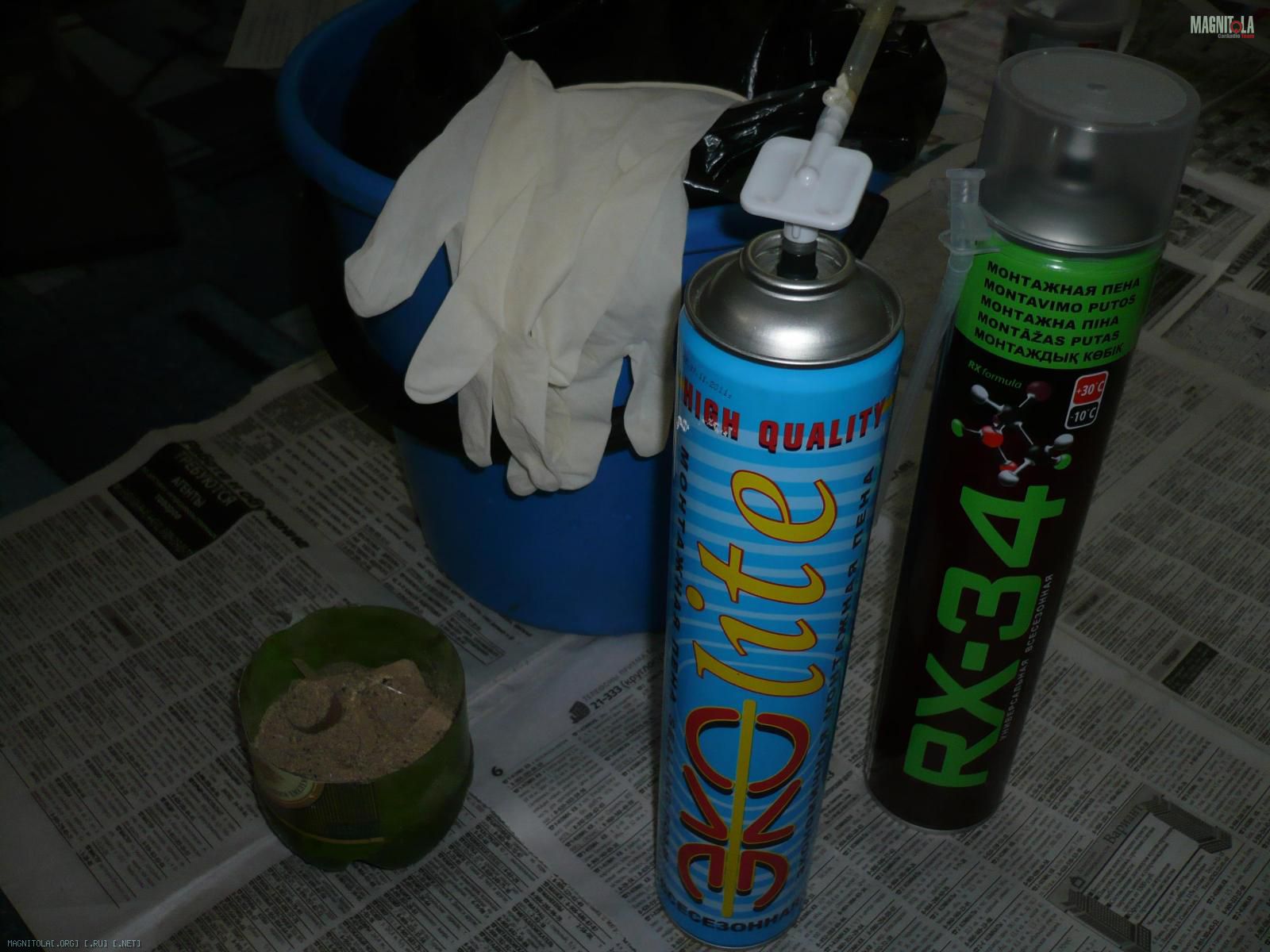 Заполняем внутренние полости! Со свинцом выдумывать не стал, решил использовать проверенную монтажную пену с опилками! Собрал мелкие опилки с гаража и мелкие кусочки фанеры и решил, что этот мусор может ещё пригодиться! Крупные опилки использовать нельзя, иначе плохо пена схватится, если чуть переборщить с опилками! Я же использовал считай, что пыль!