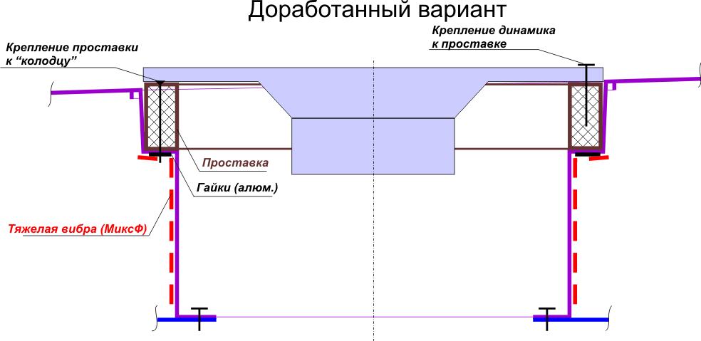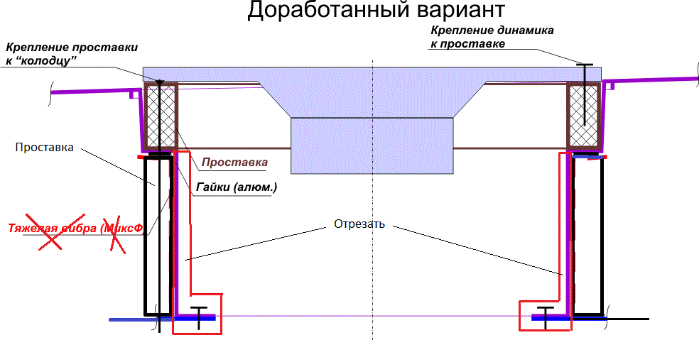 Радикальное решение - отрезать этот "колодец" нахрен и на его месте строить нормальный подиум - не приемлемо, т.к. других точек крепления обшивки в этом углу не предусмотрено. Поэтому решил пойти по простому пути: виброизоляция "колодца" + проставочное кольцо: Вложение 257960