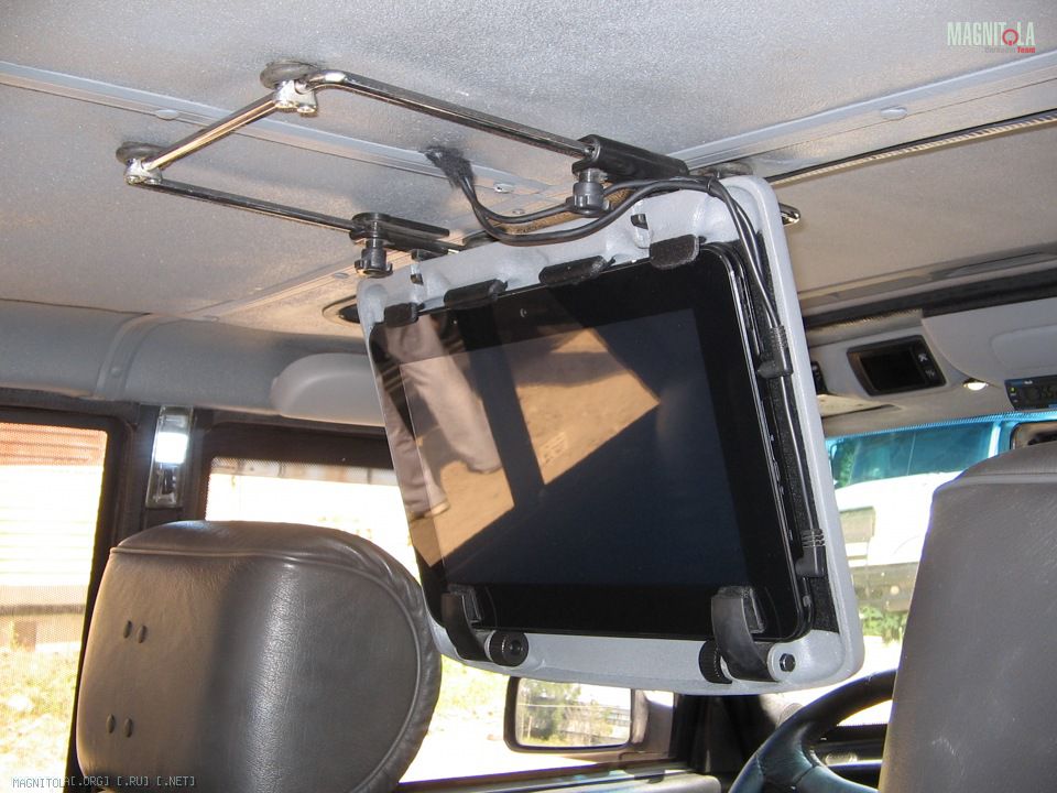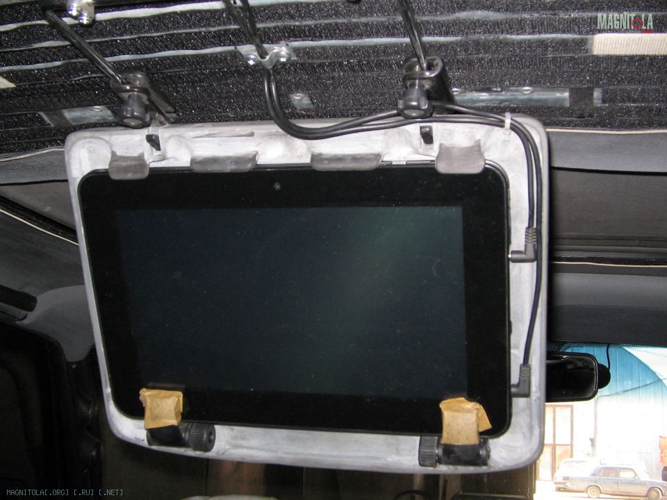 Нашел на драйв2 интересное решение. Замена потолочного монитора на планшетник ViewPad 10S со сдвижным механизмом из автомобильного столика: