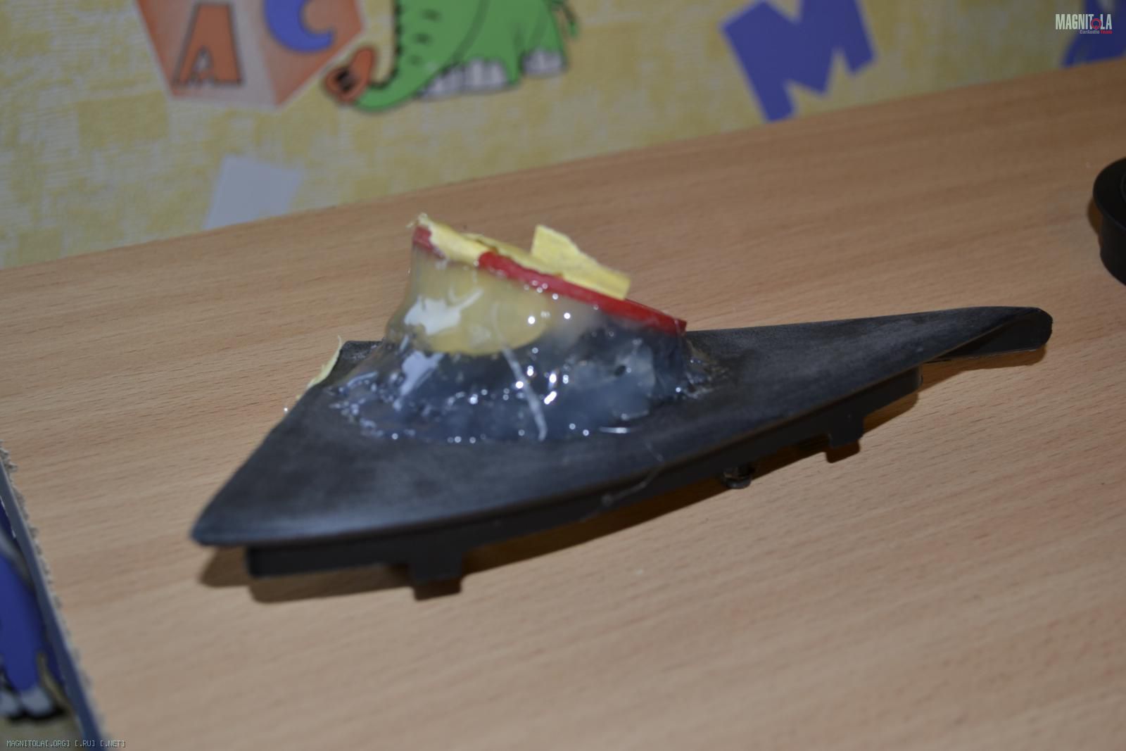 Дальше идем на кухню, включаем камфорку, греем чайную ложку и потихоньку путем плавки формируем уже более симпатичную поверхность и форму. Забыл, скотч уже давно можно было отклеить. Желательно на этом этапе обработки хорошенько растянуть расплавленный клей по поверхности пластика с внутренней и наружной сторон, тем самым вы увеличите площади склеиваемых поверхностей. Хотя для сомневающихся, что все будет держаться скажу. Оставленная на абсолютно глянцевой столешнице ложка отдиралась путем троекратного прокручивания по часовой стрелке(наверное надо было крутить против), а след от клея ножом.