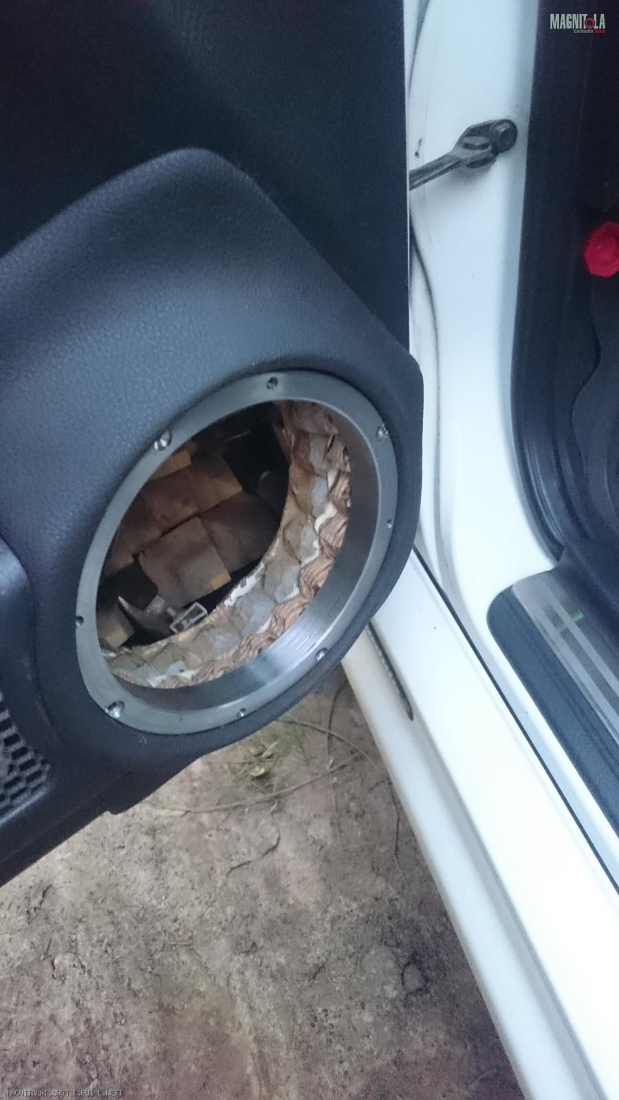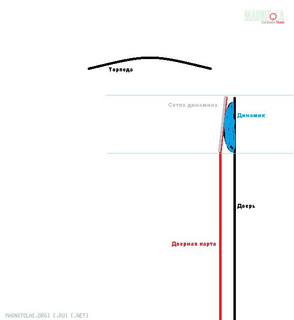 Сам динамик жестко прикручен к двери.