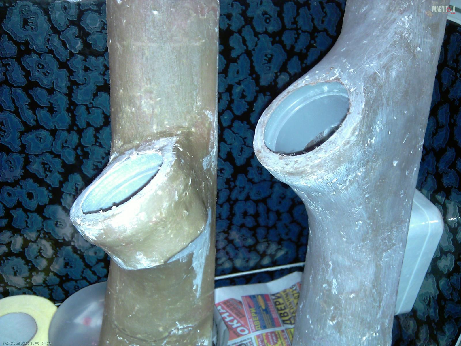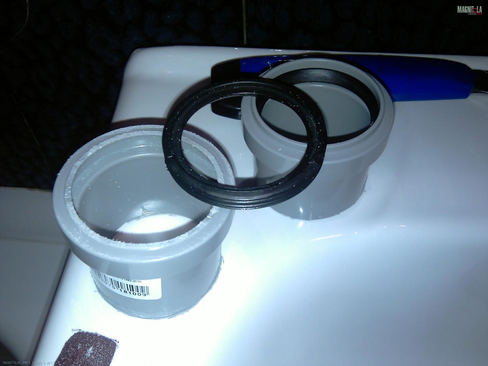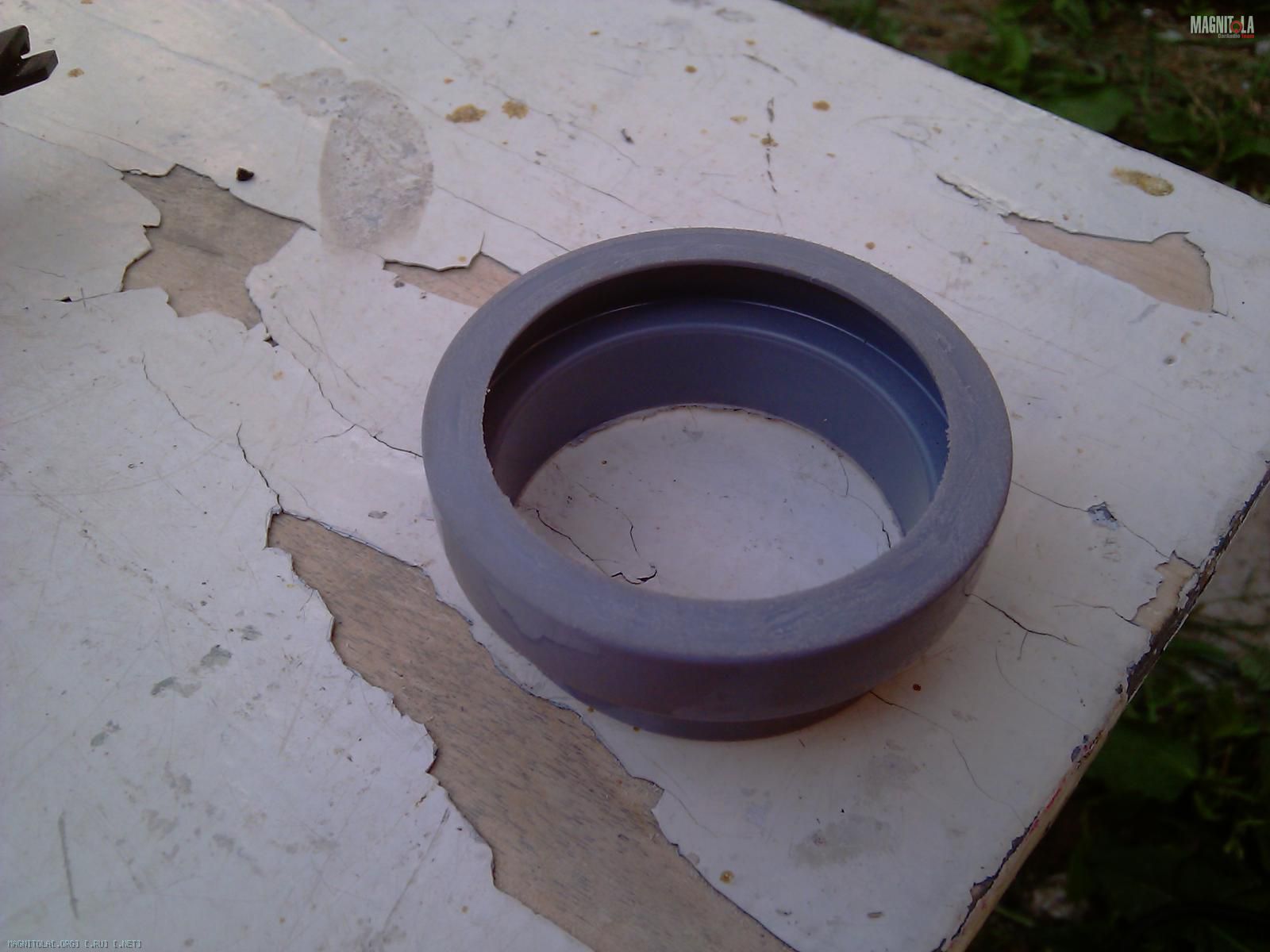 Первым делом отрезаем от трубы кольцо, по глубине ВЧ, труба оказалась чуть большего диаметра ВЧ, по этому пришлось вырезать из кольца сегмент и склеить его, естественно надо учитывать толщину материала которым будет оклеиваться стойка.