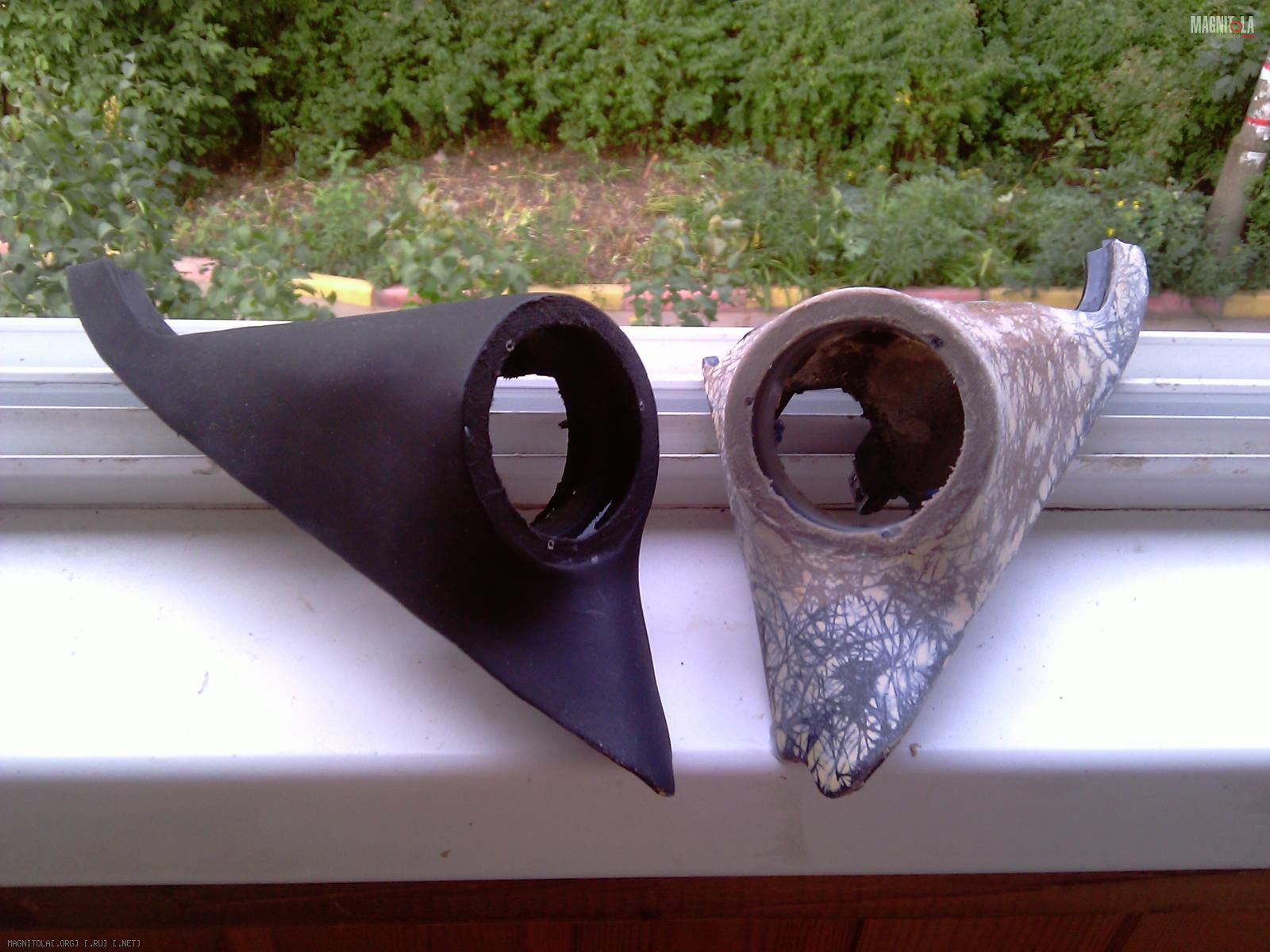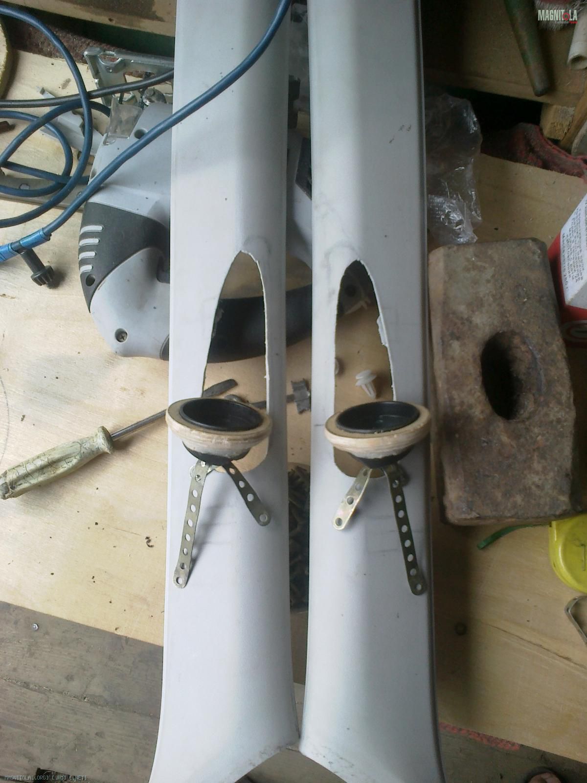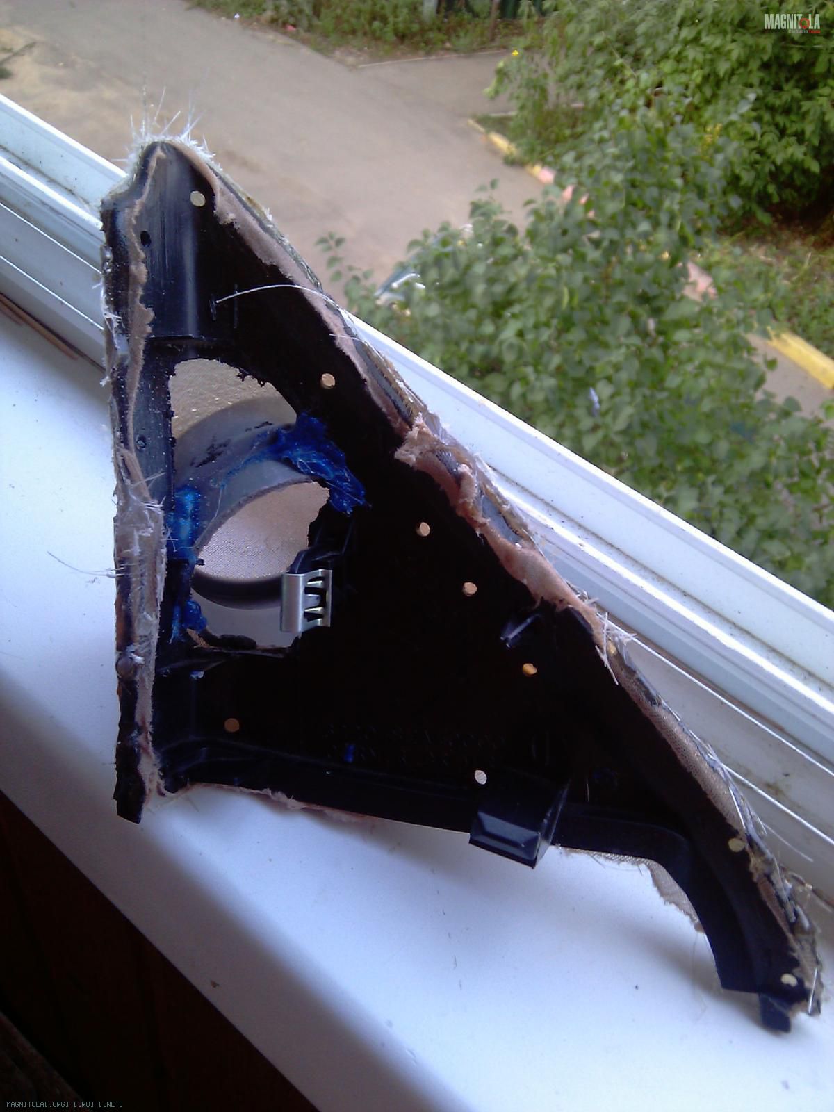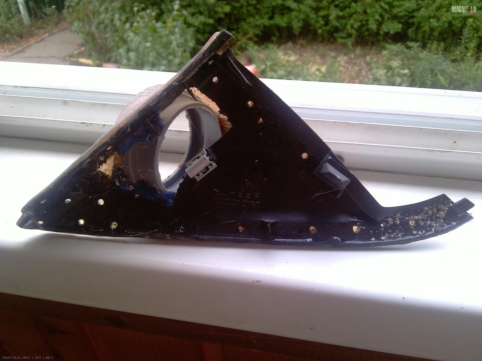 Слепил их ещё весной, по такой же технологии. Зафлокировал, воткнул твитеры и установил в авто.:smile3: Через 2 дня на левой стойке пошла трещина в месте примыкания "смолистой" части к пластику стойки, но только сверху, над твитером.:facepalm: Снизу всё ОК.