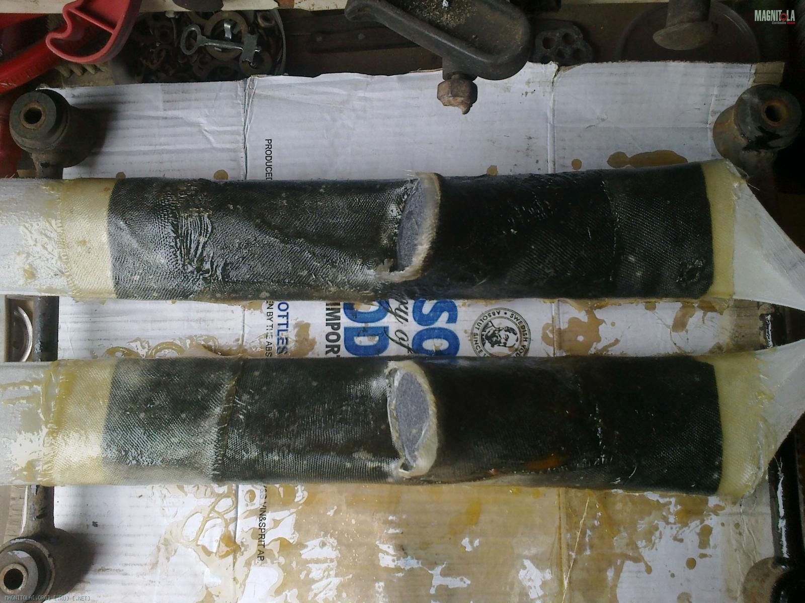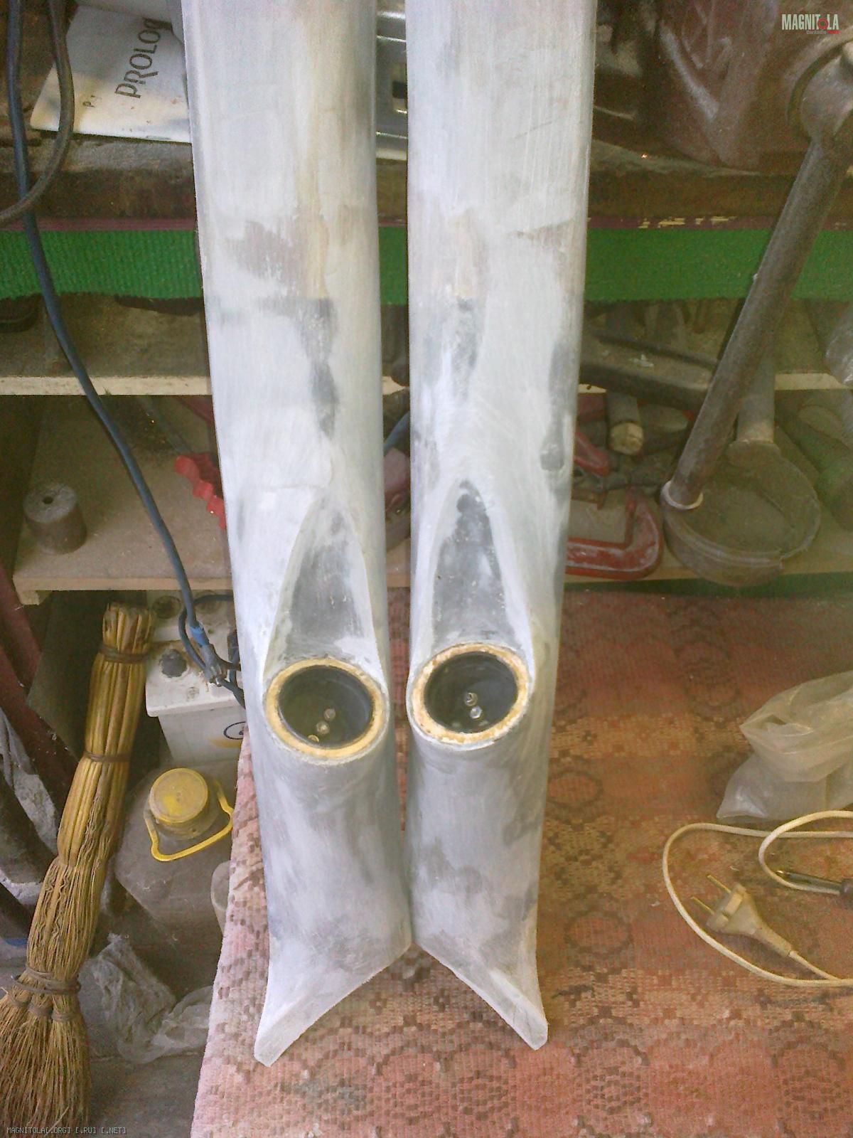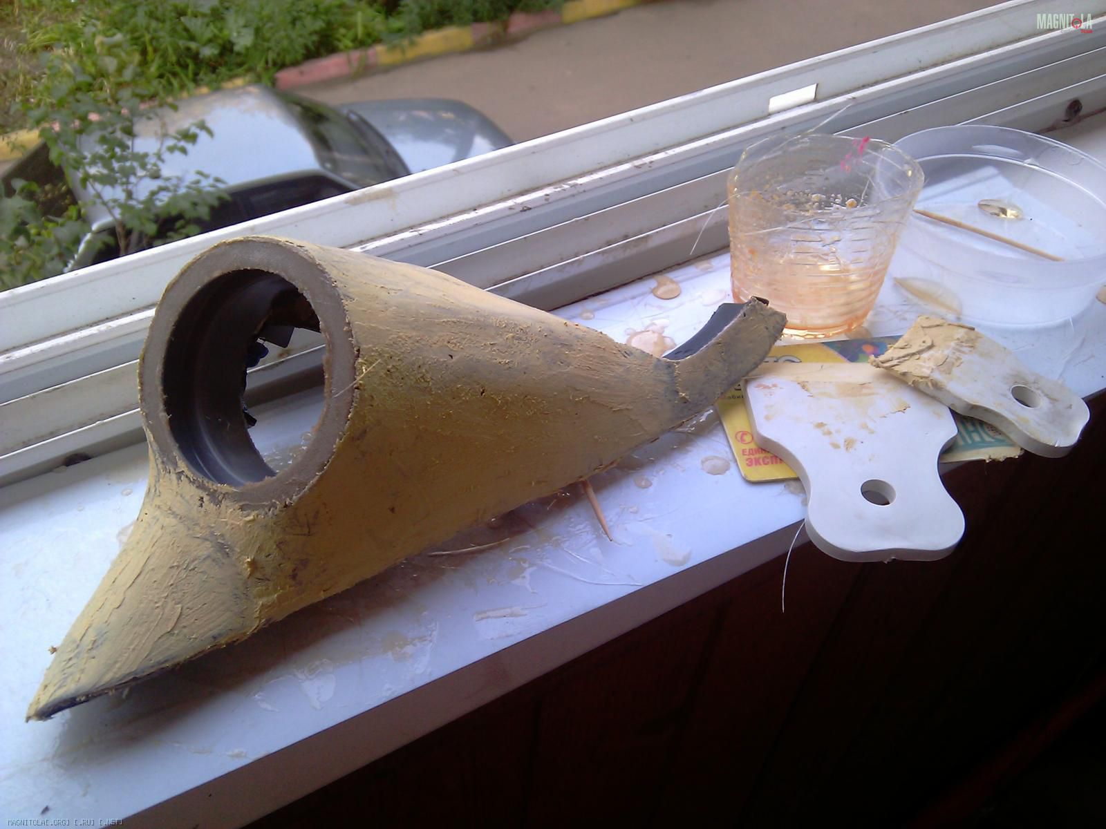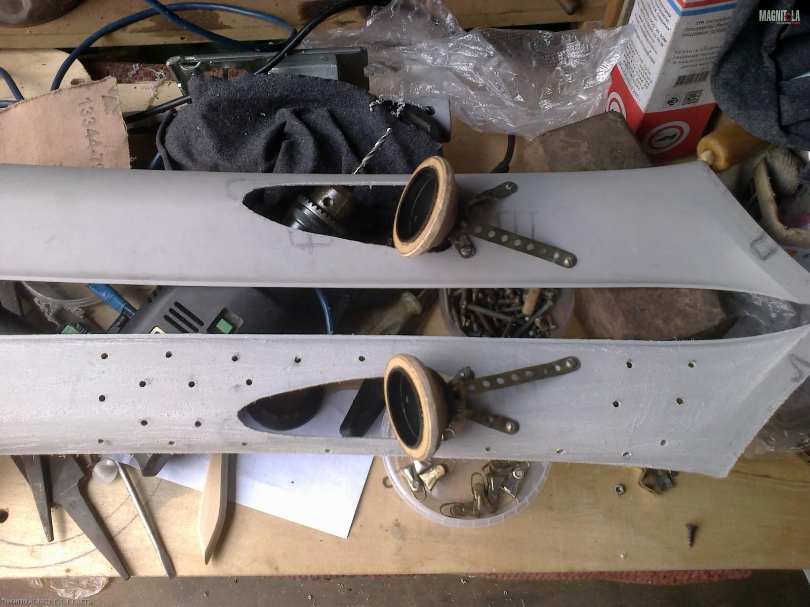 Слепил их ещё весной, по такой же технологии. Зафлокировал, воткнул твитеры и установил в авто.:smile3: Через 2 дня на левой стойке пошла трещина в месте примыкания "смолистой" части к пластику стойки, но только сверху, над твитером.:facepalm: Снизу всё ОК.