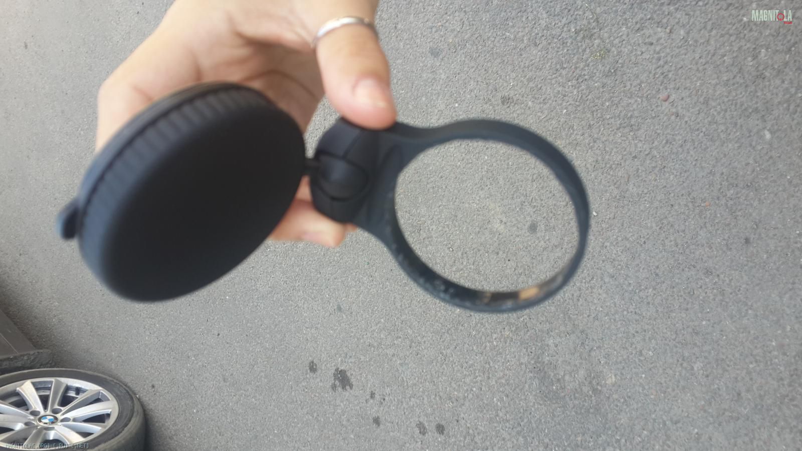 В центре, на держателе, есть металлическая клепка. Сверлом на 3 я ее высверлил, держатель разделился на 2 части. В оставшейся части вырезаем отверстие диаметром с пищалку. Можно канцелярским ножем или дрелью насверлить дырок по диаметру. В моем случае это около 55-56мм для 29rdnc. Наверное эти 56мм и есть максимальный размер который способен закрепить deppa crab mini