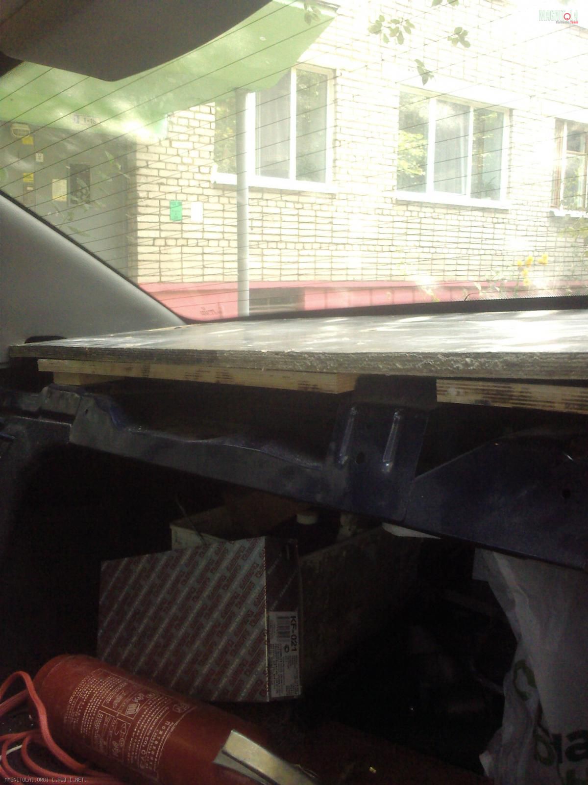 Она немного вогнута вниз. Легче набрать толщину не выходя вверх и не ухудшая обзор. Толщина в районе петель багажника минимальна 3-4мм, а в середине где стоит дин будет 40+мм.