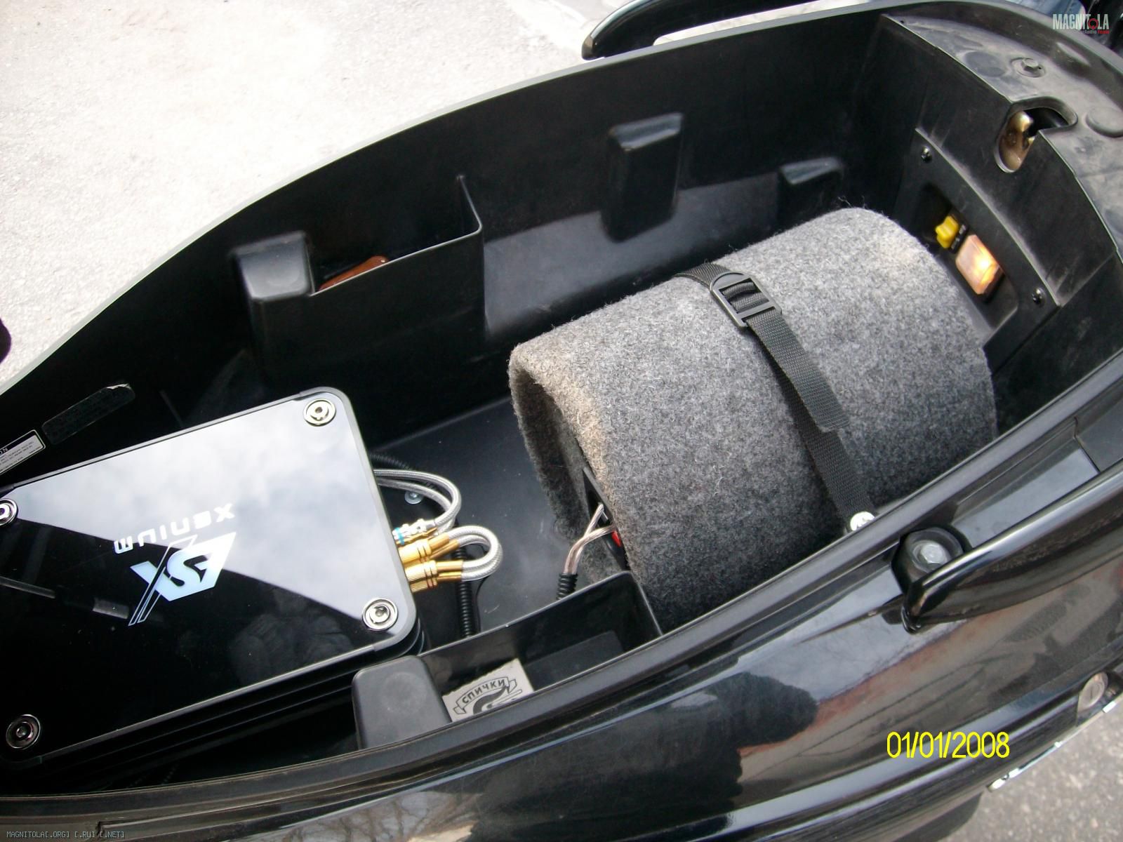 Под сиденьем установлен 4-канальный усилитель и сабвуфер.