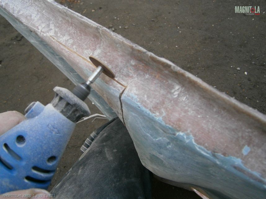 Тут на фото плохо видно из-за шпатлевки. Все грязно, но смысл - убрать вогнутость и сделать ровнее.