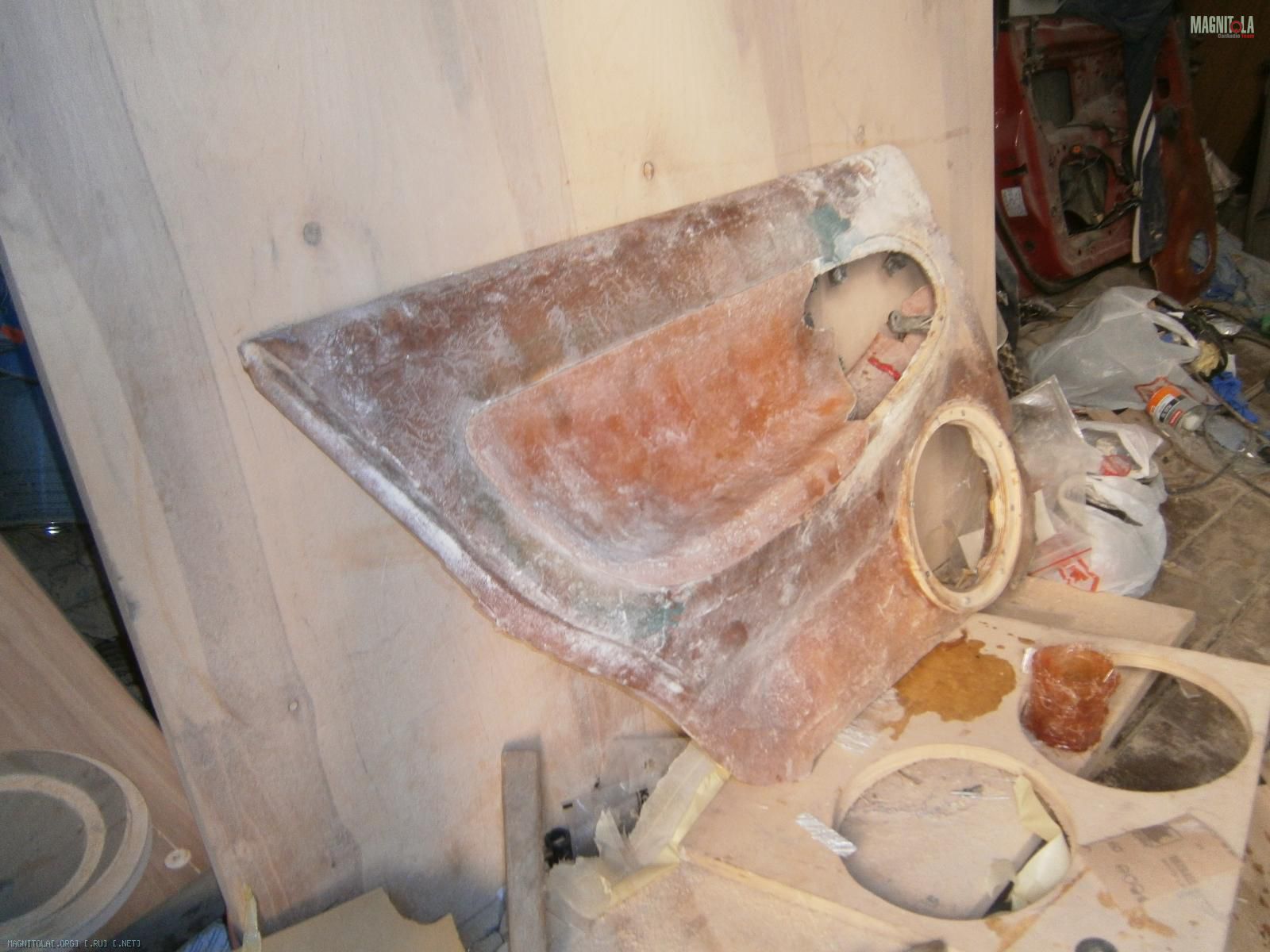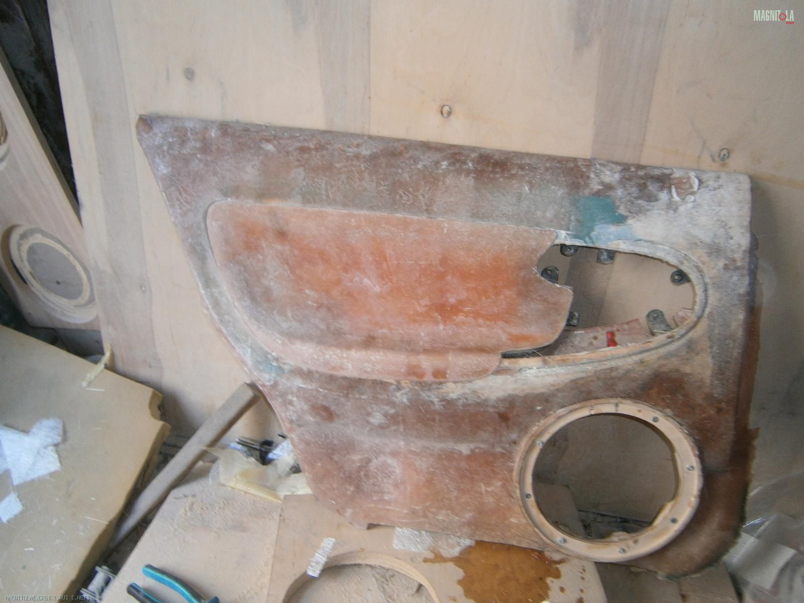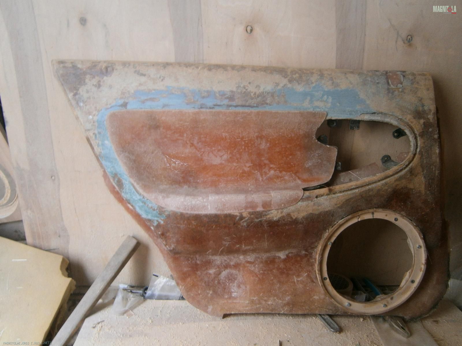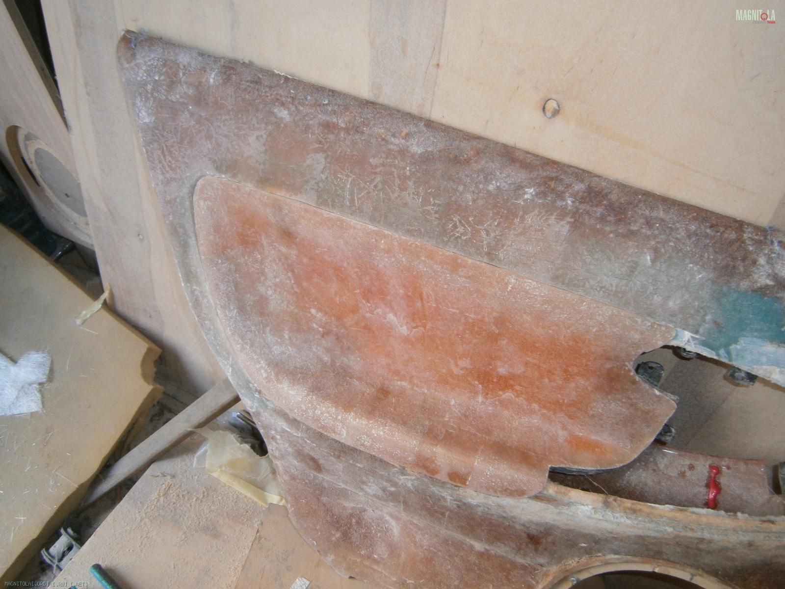 Ну и выковырял всё. Вот обшивка без вставки. В середине оставил опилки, т.к. изнутри 5 слоев стекломата.