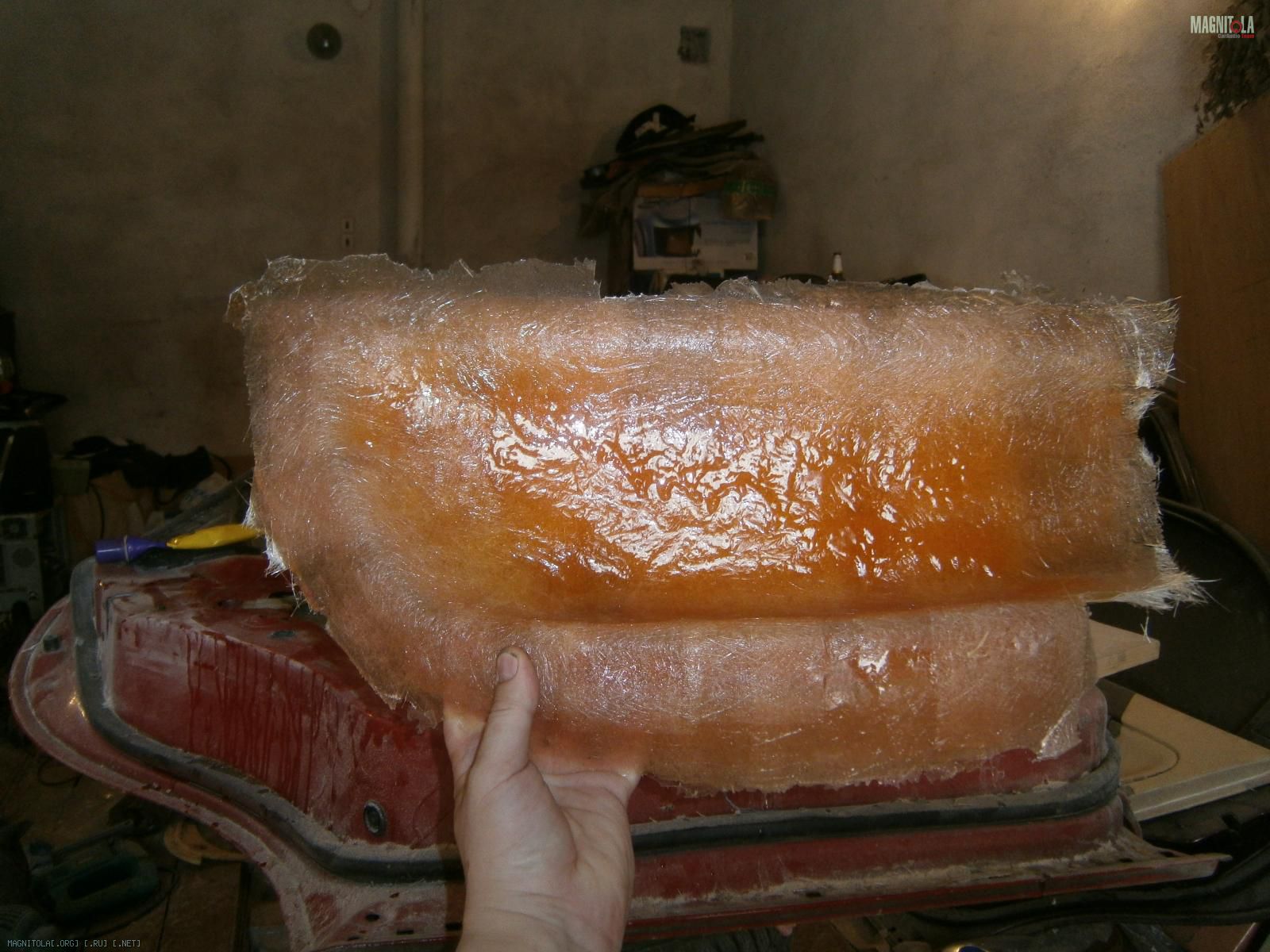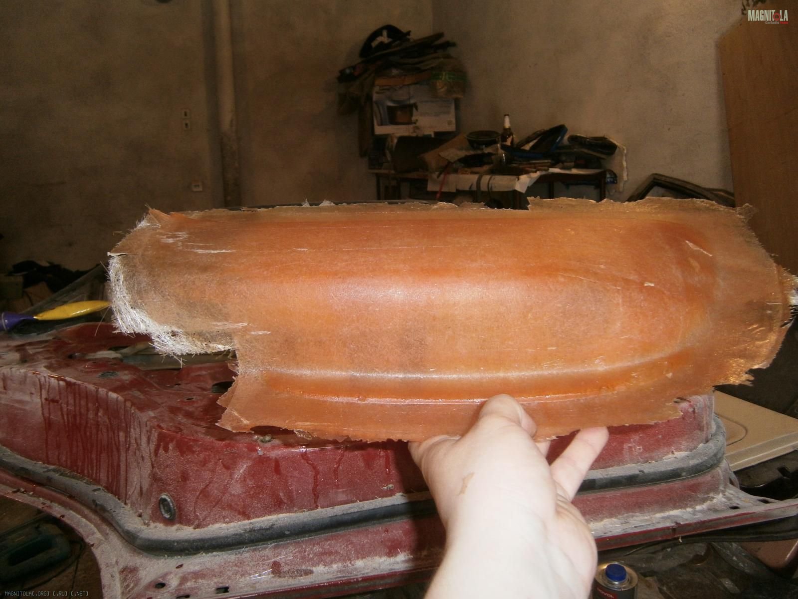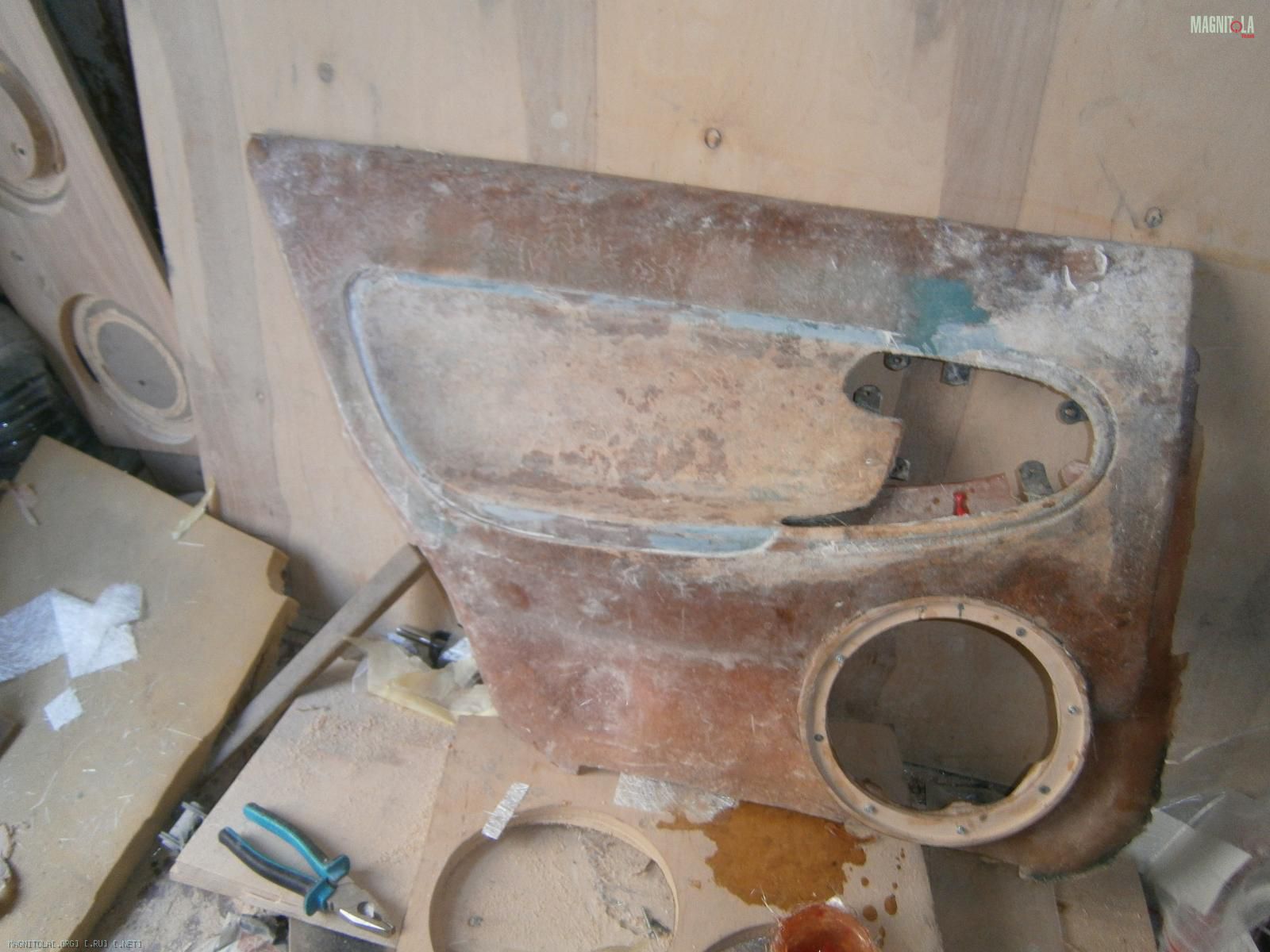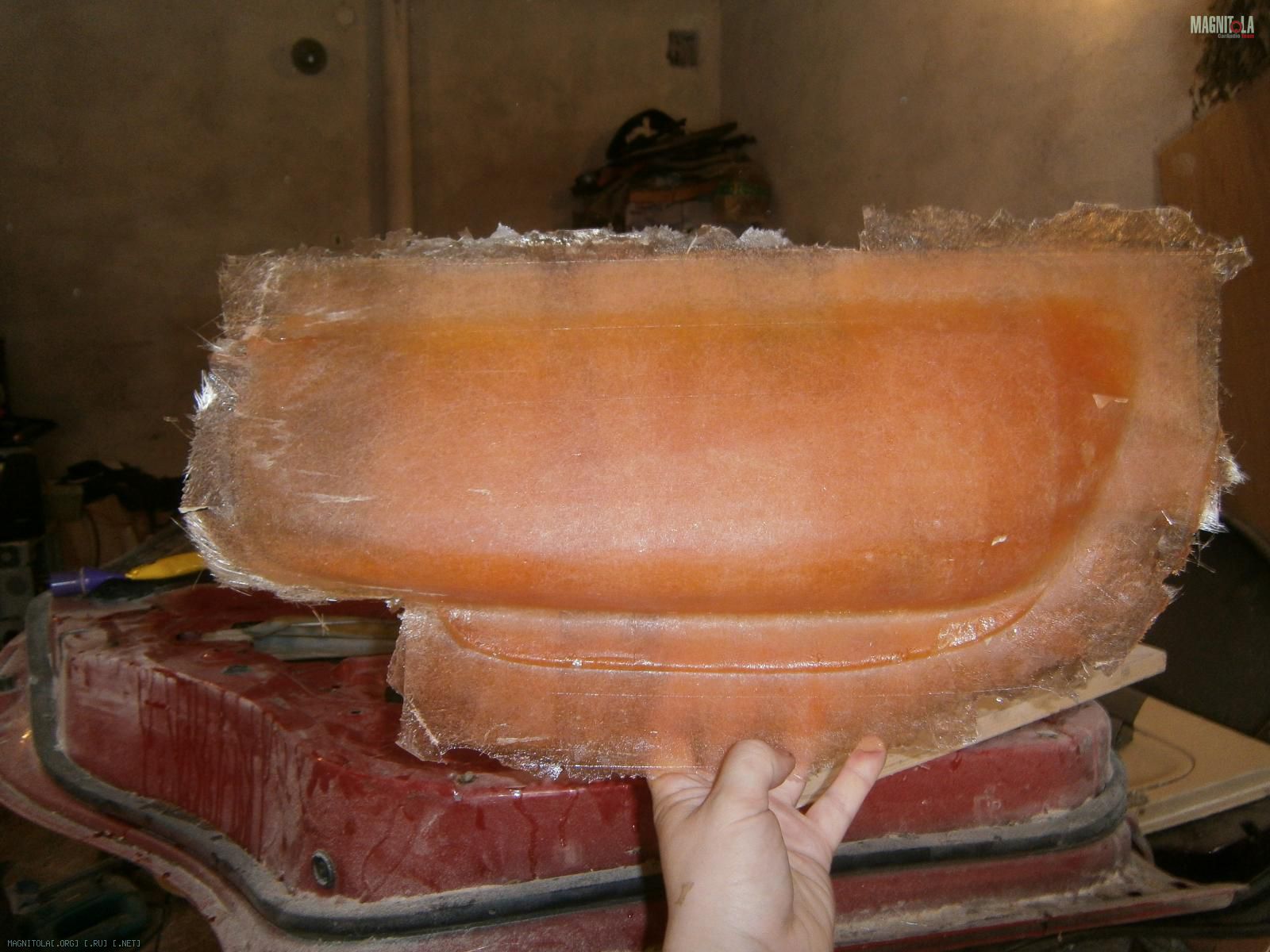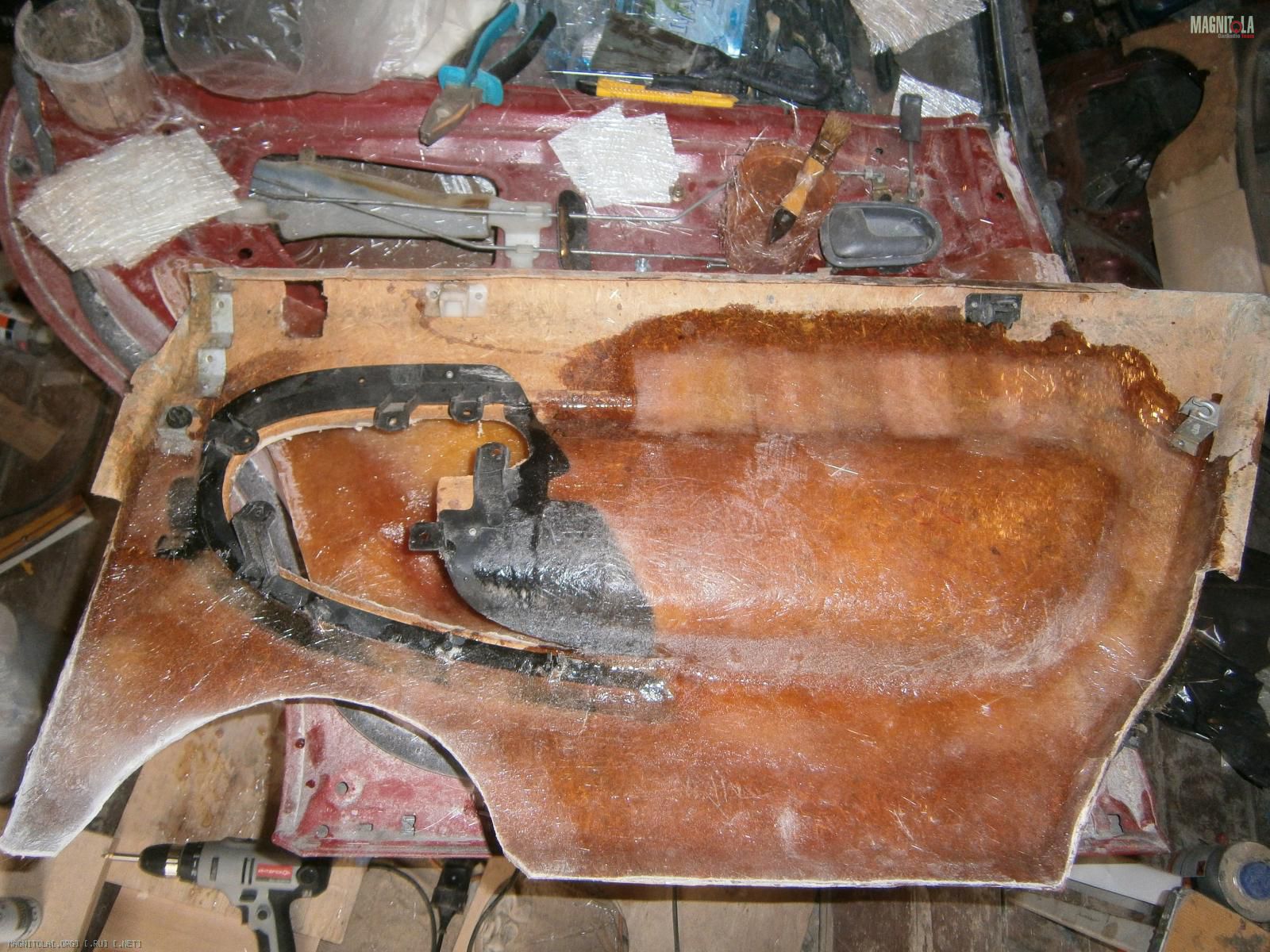 Ну и выковырял всё. Вот обшивка без вставки. В середине оставил опилки, т.к. изнутри 5 слоев стекломата.