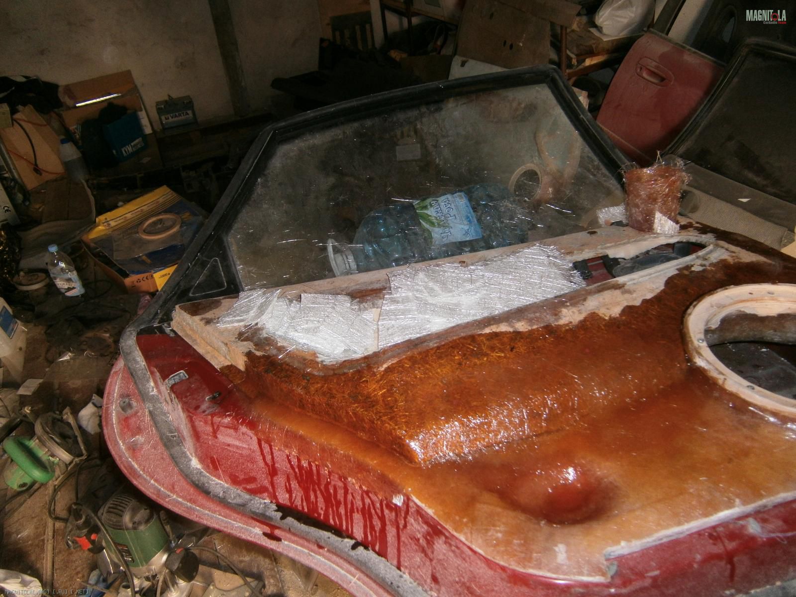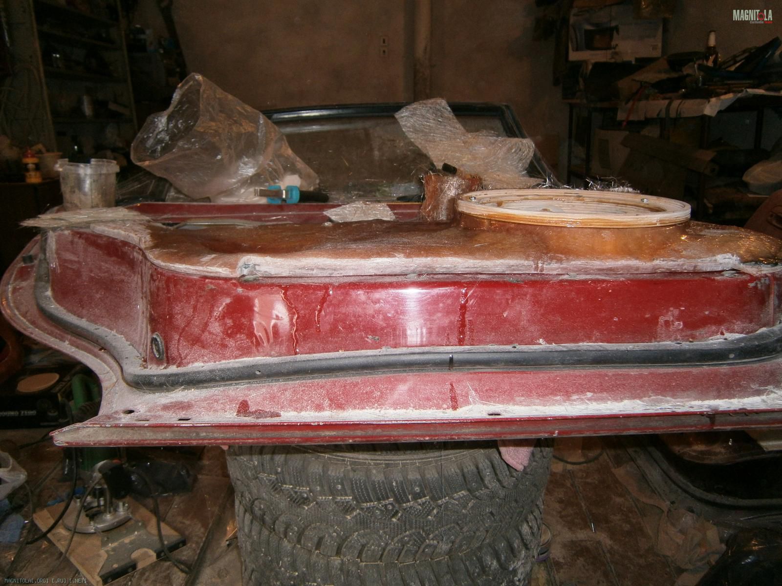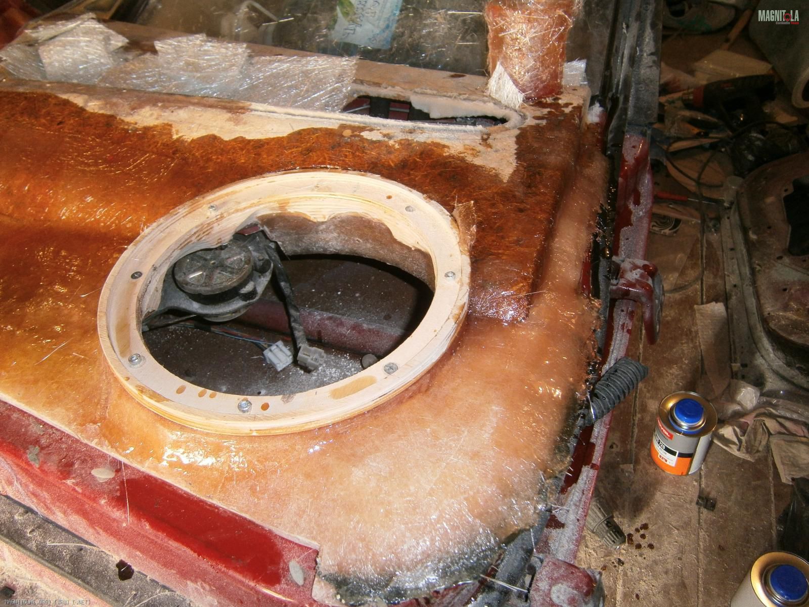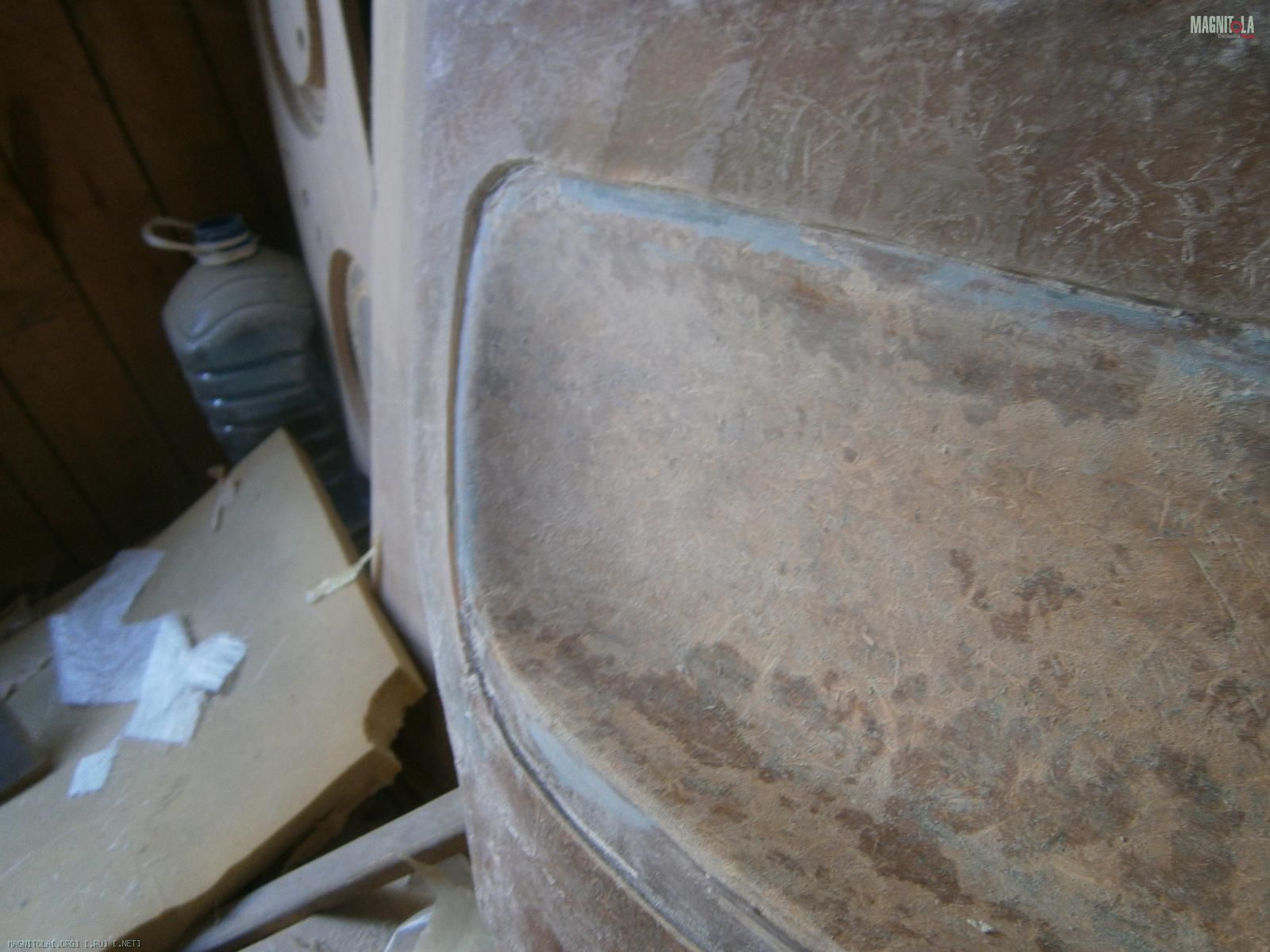 Ну и выковырял всё. Вот обшивка без вставки. В середине оставил опилки, т.к. изнутри 5 слоев стекломата.