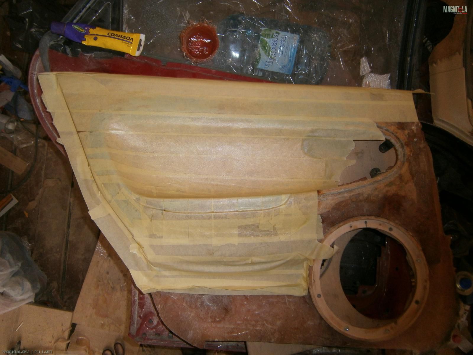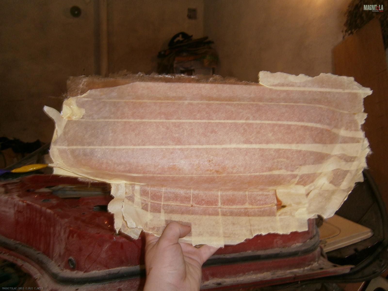 Сзади засмолил в 3 слоя. Срезал бортик картонный по периметру - маята. Верх потом засмолю, он будет доступен в отличии от низа.