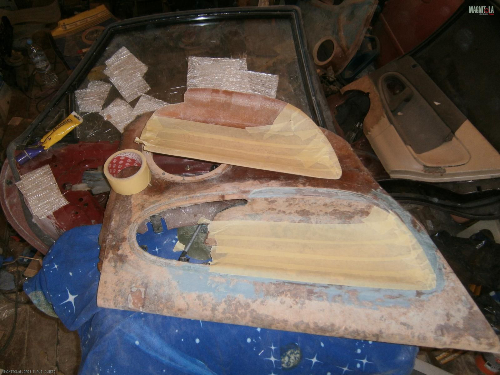 Поклеил скотч (на фото ниже видно что сделал выборку в подлокотнике - 40 минут убил на нее)
