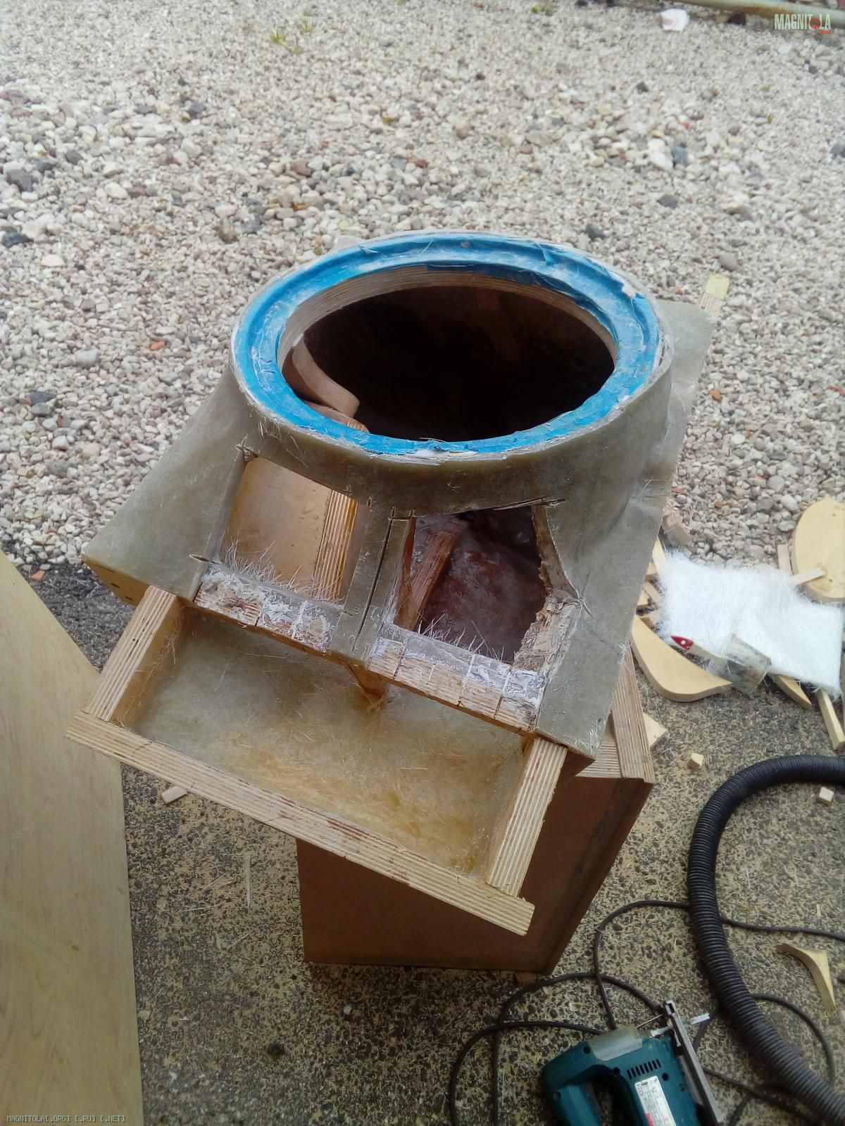 Ну и к кольцу пристрелился степлером. Кольцо очистил от стекломата, спиливал реноватором. На том же фото вверху должно быть видно обгрызенное кольцо. Это довольно быстро но муторно.