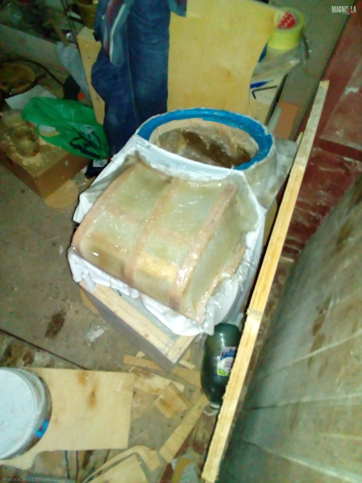 Там ещё на боковушки фанерные чопики прикрутил саморезами к стекломату. На этом фото должно быть видно немного: