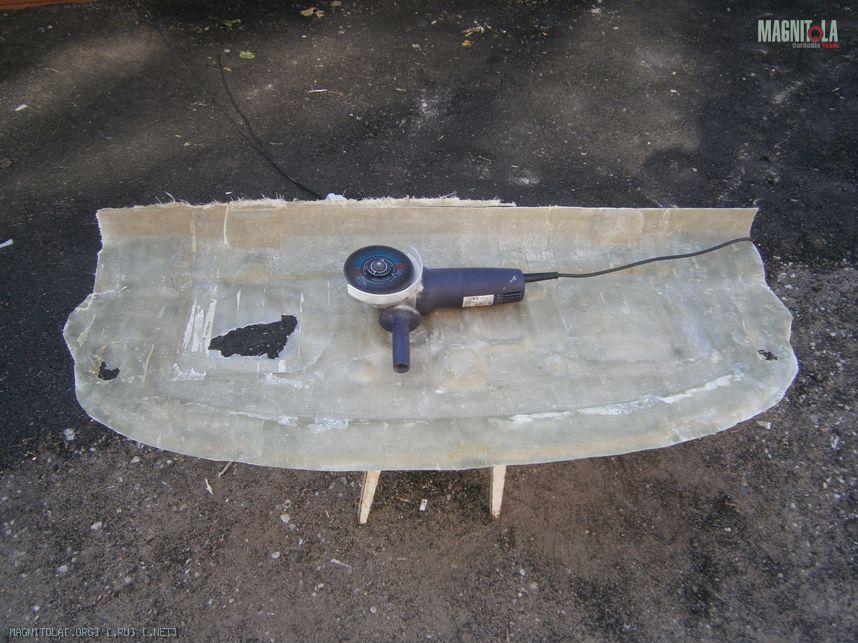 Вчера отдыхал, сегодня с утра доклеил полку и так увлекся усилением краев что мне ее стало не вынуть. Подтачивал ее пока круги у дремеля были (кончились), потом резал ножом канцелярским, потом болгаркой полез. В итоге подлез снизу и выбил ее к чертям!!!