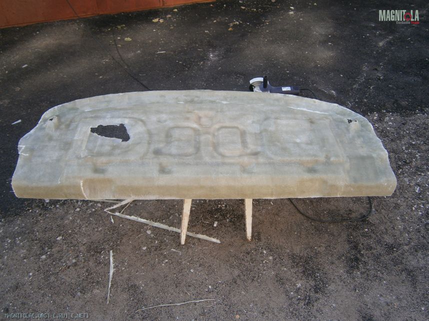 Сбегал в магазин купил 10 пачек стекломата 300-го, смолы правда пожадничал взять, еще полтора литра примерно осталось в канистре. Все таки придется делать полку сэндвичем. Т.е. поднаращу толщину, выставлю кольца и сделаю фанерные вставки с забивными гайками для крепления снизу. Потом обтяну всю полку как стелс. И наращу толщину 5 слоями трехсотого. Натяжка скроет крепление заодно. Потом пошкурю и обтяну хомяком )))